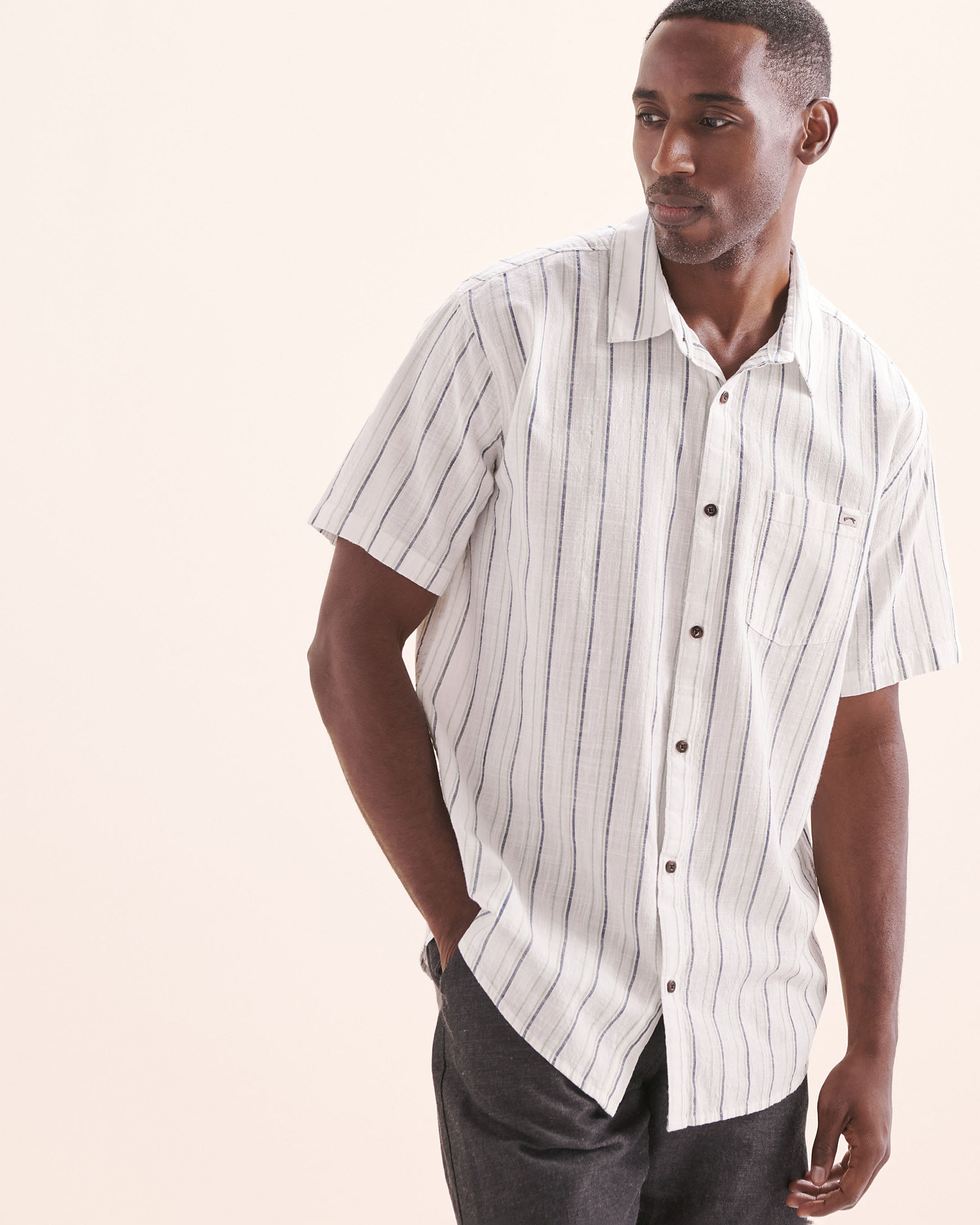 With its textured stripe pattern and 100% cotton construction, this shirt brings a fresh take on casual style. Its button‑down collar and chest pocket give it a polished look, perfect for the office or a laid‑back summer outing. A versatile essential that transitions effortlessly from one season to the next.