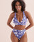 Make a statement with the Blue Coastal bralette bikini top, designed to flatter D cups! Its crisscross front design, complemented by delicate ruching, adds a chic touch. The floral pattern in coastal blue and white brings to mind waves and the cool breeze of sunny days.