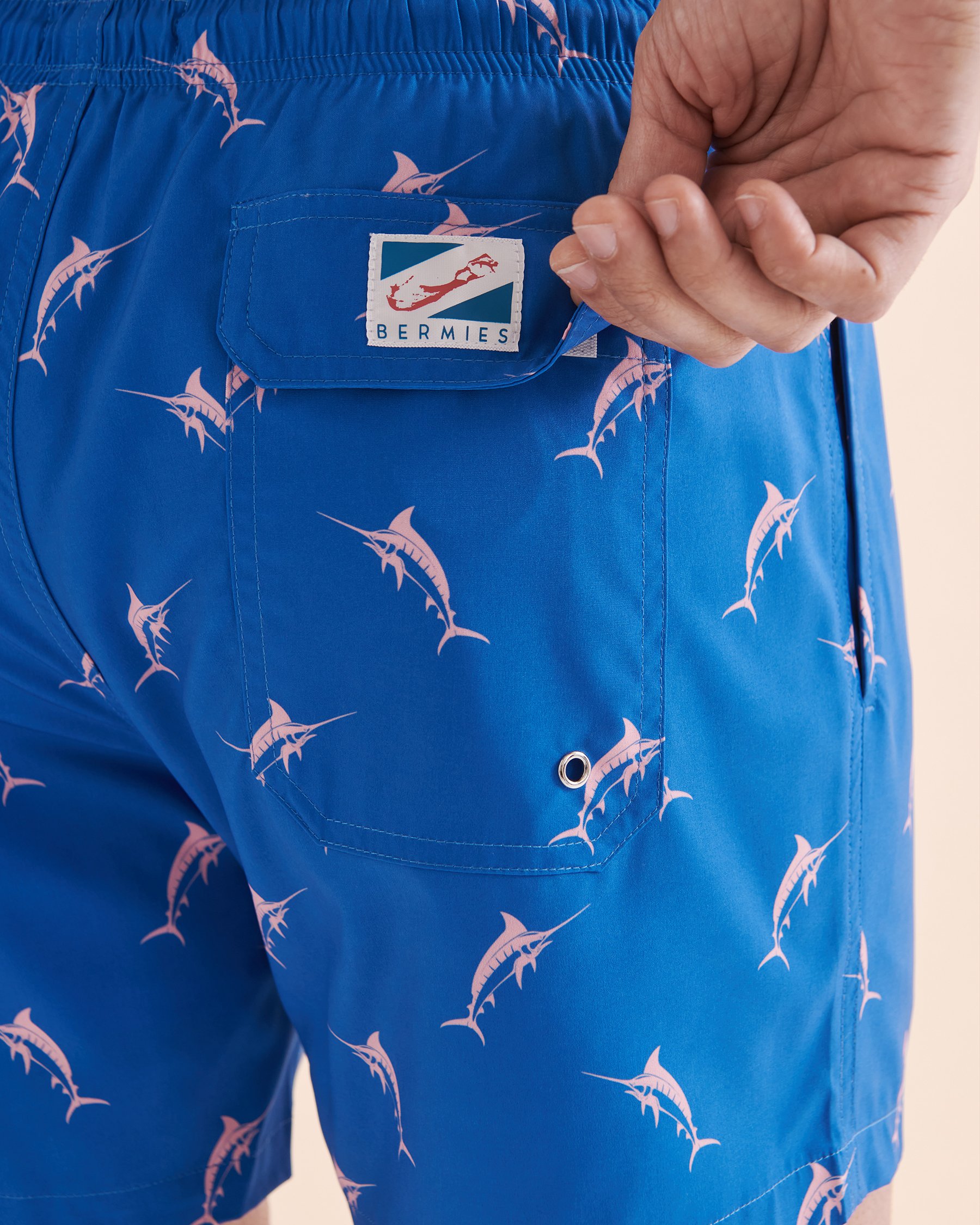 Start your vacation off right with the Bermies Blue Marlin Volley Swimsuit. This blue and pink patterned swimsuit is made of quick-dry 4-way stretch fabric that also provides UV protection. Its mesh lining and elastic waistband ensure all-day comfort. Made from recycled fibres this swimsuit is an environmentally friendly choice!
