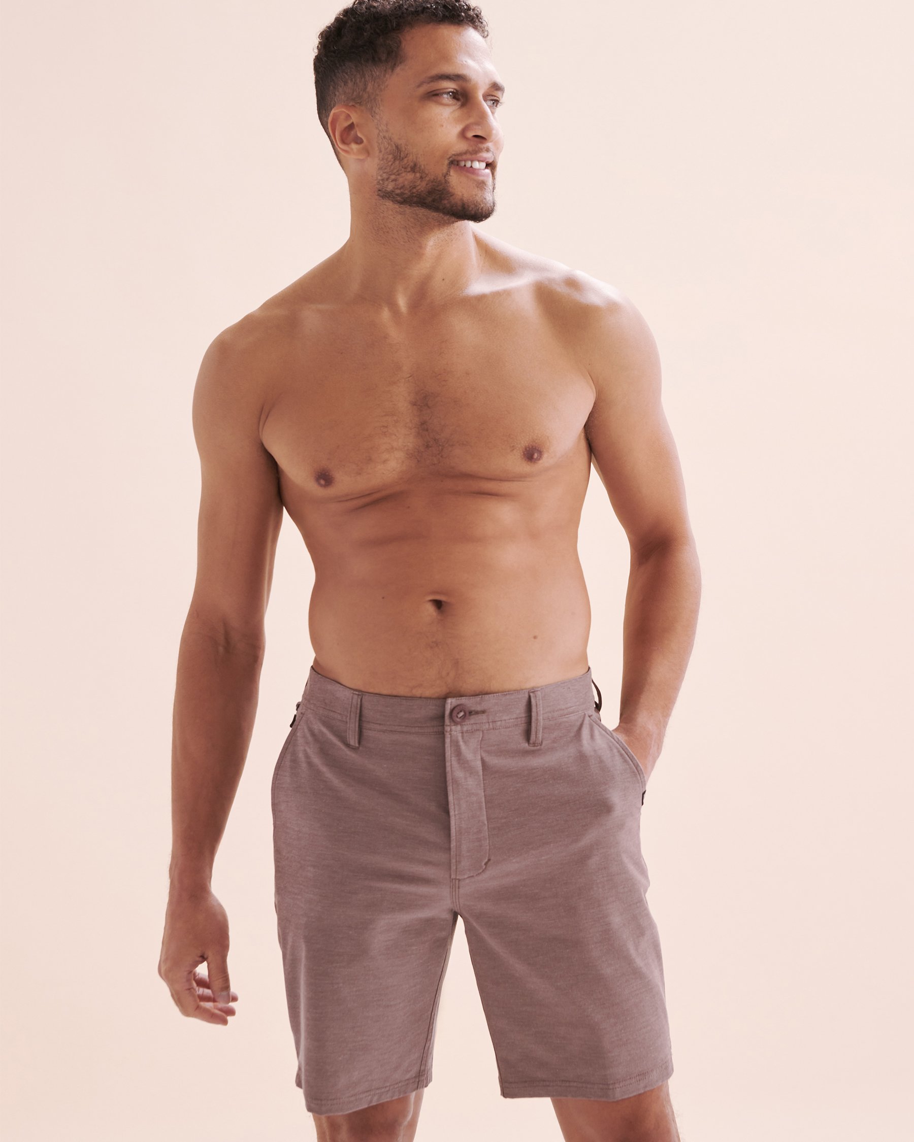 The Boardwalk Phase Nineteen 19" shorts strike the perfect balance between comfort and performance for your beach days or city adventures. Featuring a standard fit and a front button closure with belt loops, they ensure a secure and tailored feel. The hydrophobic quick-dry fabric with a durable water-repellent finish keeps you comfortable, whether you’re fresh out of the water or on the go. Functional details like a zippered side pocket and welted back pockets add practicality without compromising style. These shorts are lightweight, flexible and built to last. Finished in a fresh brown hue, they’re ready to bring a pop to your wardrobe.