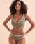 If you are looking for style and support, Clarity Florence D Cup Plunge Bikini Top by Skye is perfect for you. This bikini is made of a ribbed, sage material with a white border lining the swimsuit. Its underwire and removable pads ensure a maximum level of support.
