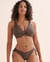 This brown crochet D-cup bikini top is the star of the beach. With its front tie, golden beads that sparkle in the sun and side ruching, it exudes irresistible charm.