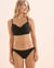 Dive into elegance with confidence in this push-up bikini top. Its design combines subtle underwiring, moulded cups and removable padding for a naturally enhanced shape and perfect support. In classic black, fully lined and slightly sculpting, it’s a timeless bikini top for any swimwear wardrobe. The adjustable straps, with two positioning options and rose-gold metal rings, add a refined touch. A crossover front enhances the silhouette, while the five-hook closure ensures a custom fit.