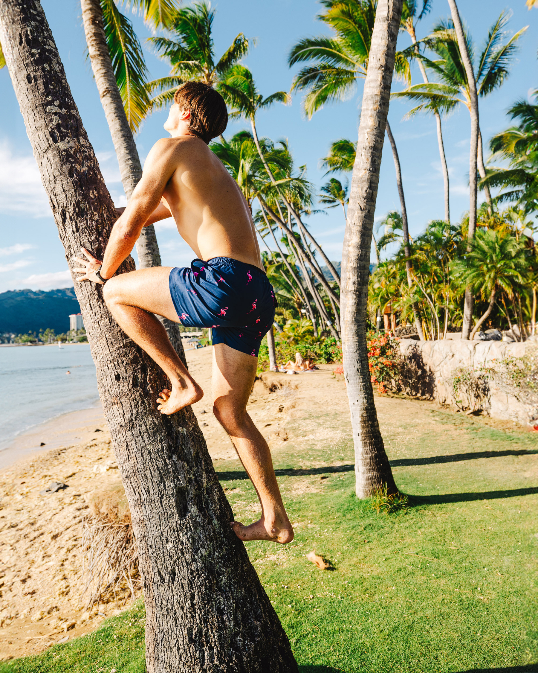 Forget those oversized, personality-free board shorts, this swim trunk brings it back to a classic cut and a bold flamingo print. Don’t be fooled by its laid-back look, this short has the soul of an adventurer. The built-in four-way stretch compression mesh liner delivers optimal support without chafing or discomfort. With sweat-wicking, odour-resistant tech and UPF 50+ sun protection, you’ll stay dry, cool and shielded from sunrise to sunset. It’s water-repellent and breathable, drying in a flash. And of course, there’s no missing that vibrant blue-and-pink flamingo pattern, a playful nod to tropical wildlife.