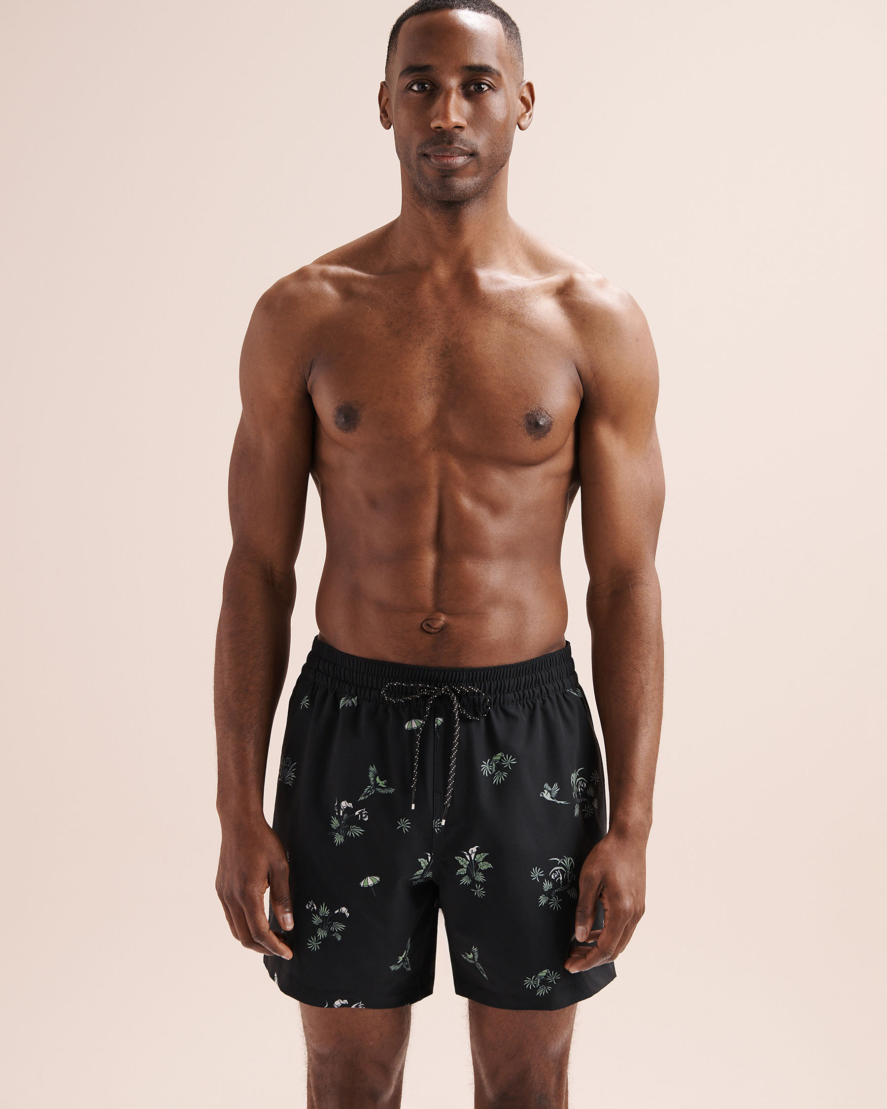 Bright and summery, these swim shorts stand out with their vibrant print. The elastic waistband and comfortable 40 cm length make them an ideal choice for days spent by the water. The back pocket keeps your small essentials secure so you can fully enjoy the moment.