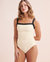 Slip into the square neck one-piece from our I'm With The Band collection, crafted in luxurious textured fabric, and let the details do the talking! With its bold black trim and flattering front ruching, this swimsuit enhances your silhouette while delivering all-day comfort. Removable cups, a floating underwire, and adjustable straps let you customize your support, while full-back coverage keeps you confidently covered.