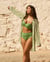 Light as a summer breeze, this chiffon shirt reveals a subtle transparency that enhances without overdoing it. Its long sleeves are easily rolled up, while the coconut button adds a natural touch. The mosaic pattern in shades of green and beige is designed to be worn with a bandeau bikini top and mid-rise bottoms. This shirt is the perfect piece for strolling along the beach or brightening up your summer evenings, a covering garment that celebrates confident femininity.