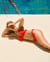 Want everyone to notice how stunning your swimsuit is? This low-rise Brazilian bikini bottom is your perfect partner for that. With side ties that dance with your every move and a vibrant red shade that evokes a fiery sunset.