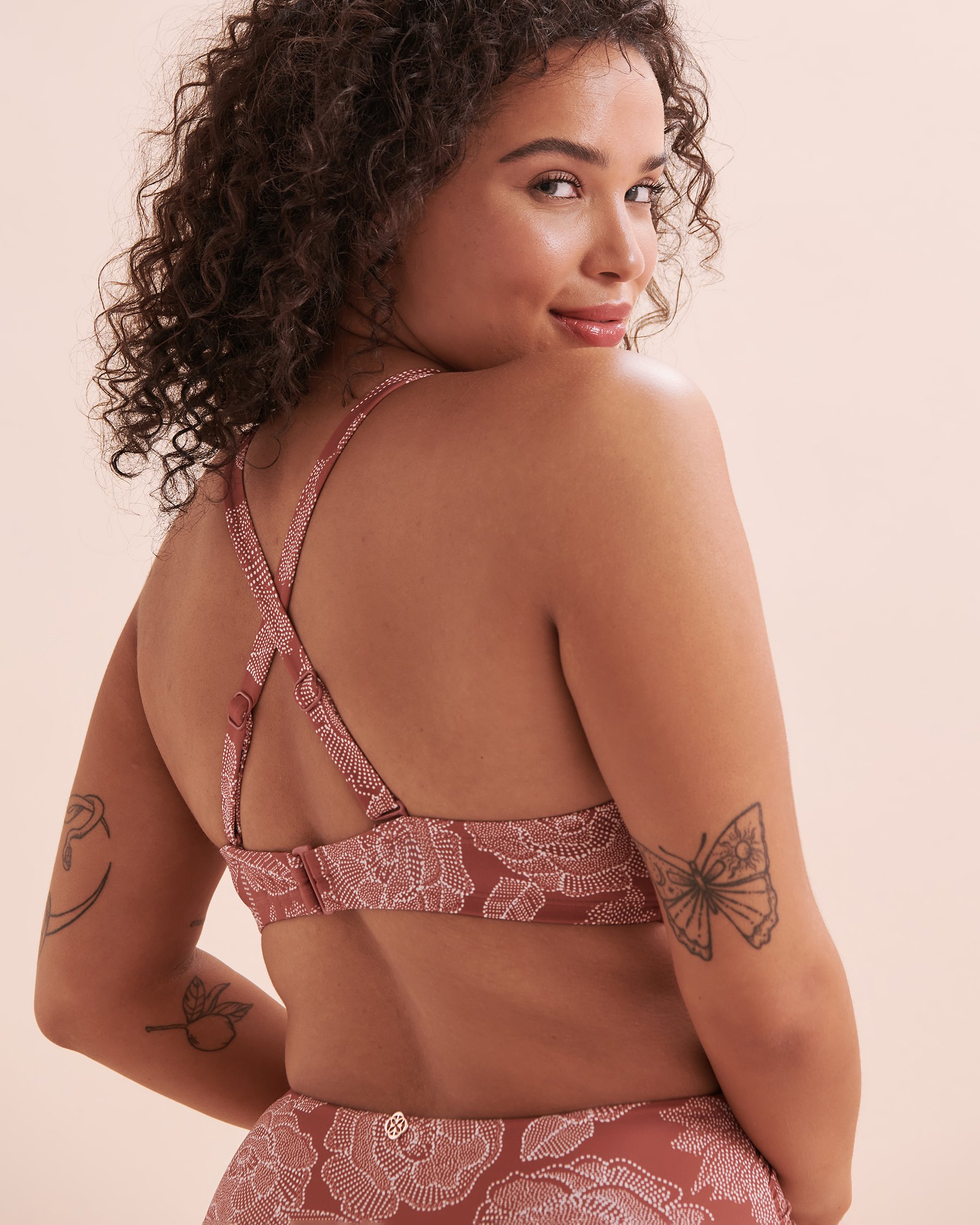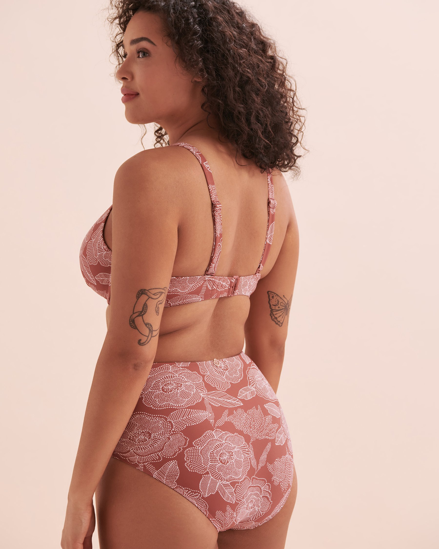 Turquoise Couture's D Plunge Marsala Bikini Top is your dream swimsuit! This floral top has a front knot and two-way adjustable straps. Its underwire and moulded cups are perfect for those who want a little extra support. You won't want to take it off! Complete the look with Turquoise Couture's High Bikini Marsala bikini bottom.