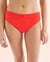 Elevate your style with radiant flair. This mid-rise bikini bottom is the epitome of chic. Its folded, ruched waistband, featuring a decorative ring, brings a modern touch that truly stands out. It provides full coverage at the back for comfort without compromise. In a bright red hue, this bottom perfectly enhances your sun-kissed glow.