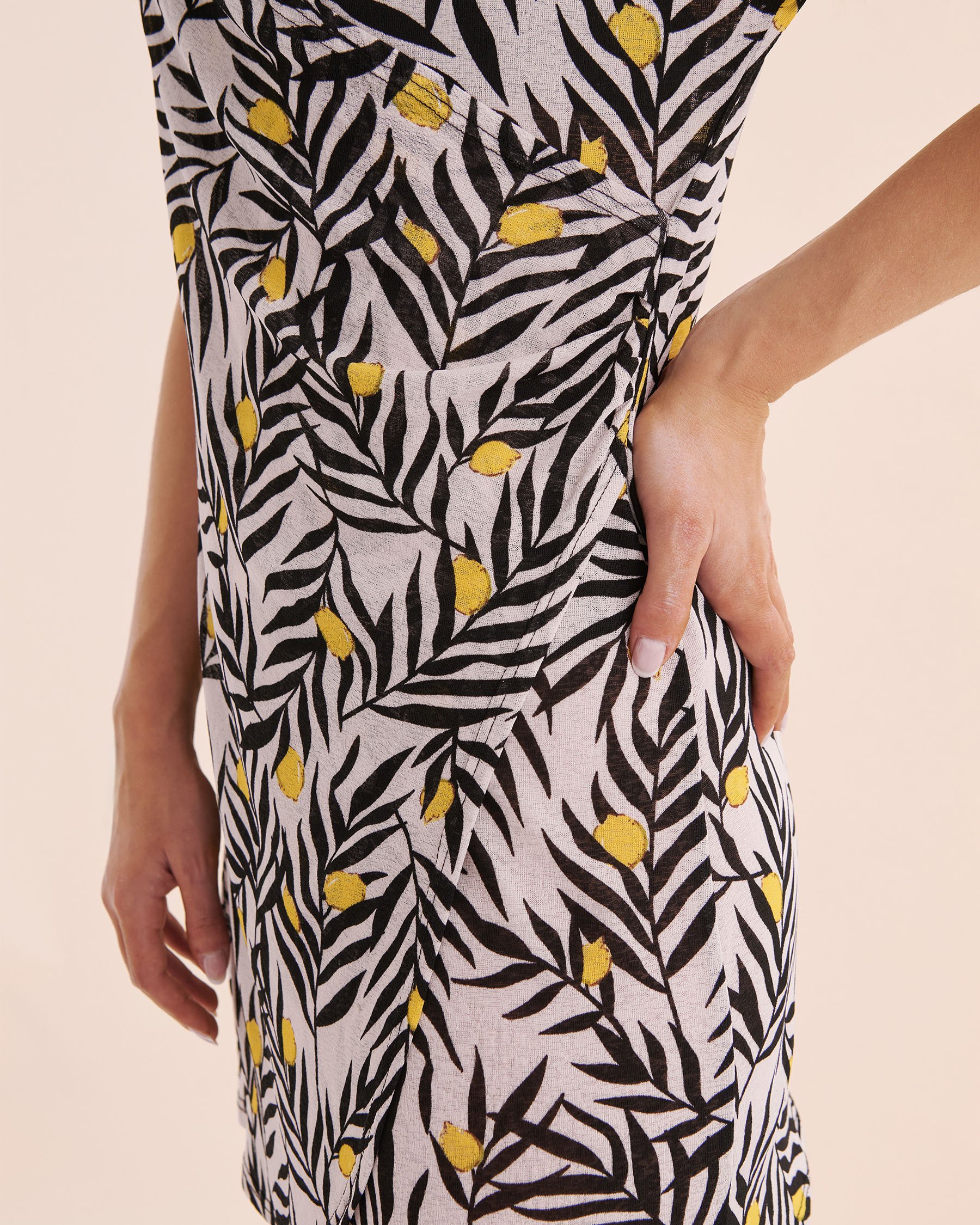 Light as a breeze, fresh as a lemon, this wrap dress with its vibrant lemon print wraps you in an airy sensation thanks to its mesh fabric. Its wrap design flatters your figure, while the V-neck and short sleeves give it a chic yet relaxed look.