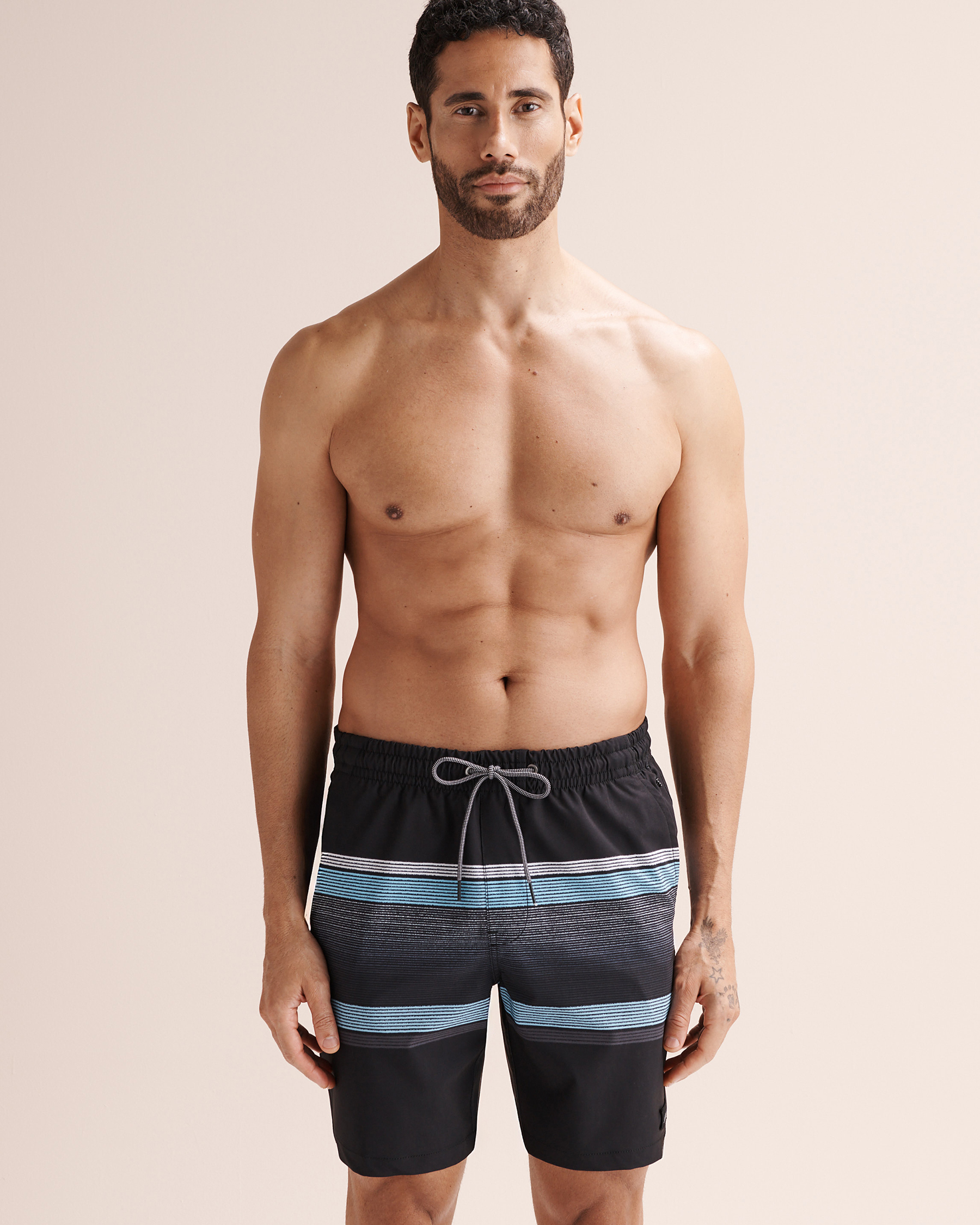 The Lucky Aloha volley shorts are made for active sunny days. With an elastic waistband and adjustable drawstrings, they offer a secure and comfortable fit. Thanks to the mesh liner and functional pockets, including a key loop, they’re super practical. The white and blue striped pattern adds a modern graphic touch, perfect for standing out on the beach or in the city.