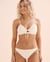 This ribbed bralette bikini top finds the perfect balance between comfort and effortless charm. Wire-free yet supportive, it moulds to your shape with soft ribbed fabric, delicate ruching at the neckline, and removable padding. The front of the top features an open knot that is subtly adorned with silver accents, starfish and palm trees that whisper of salty air and sun. This white top shines brightly. It’s light, playful, and ready to ride every wave with you.