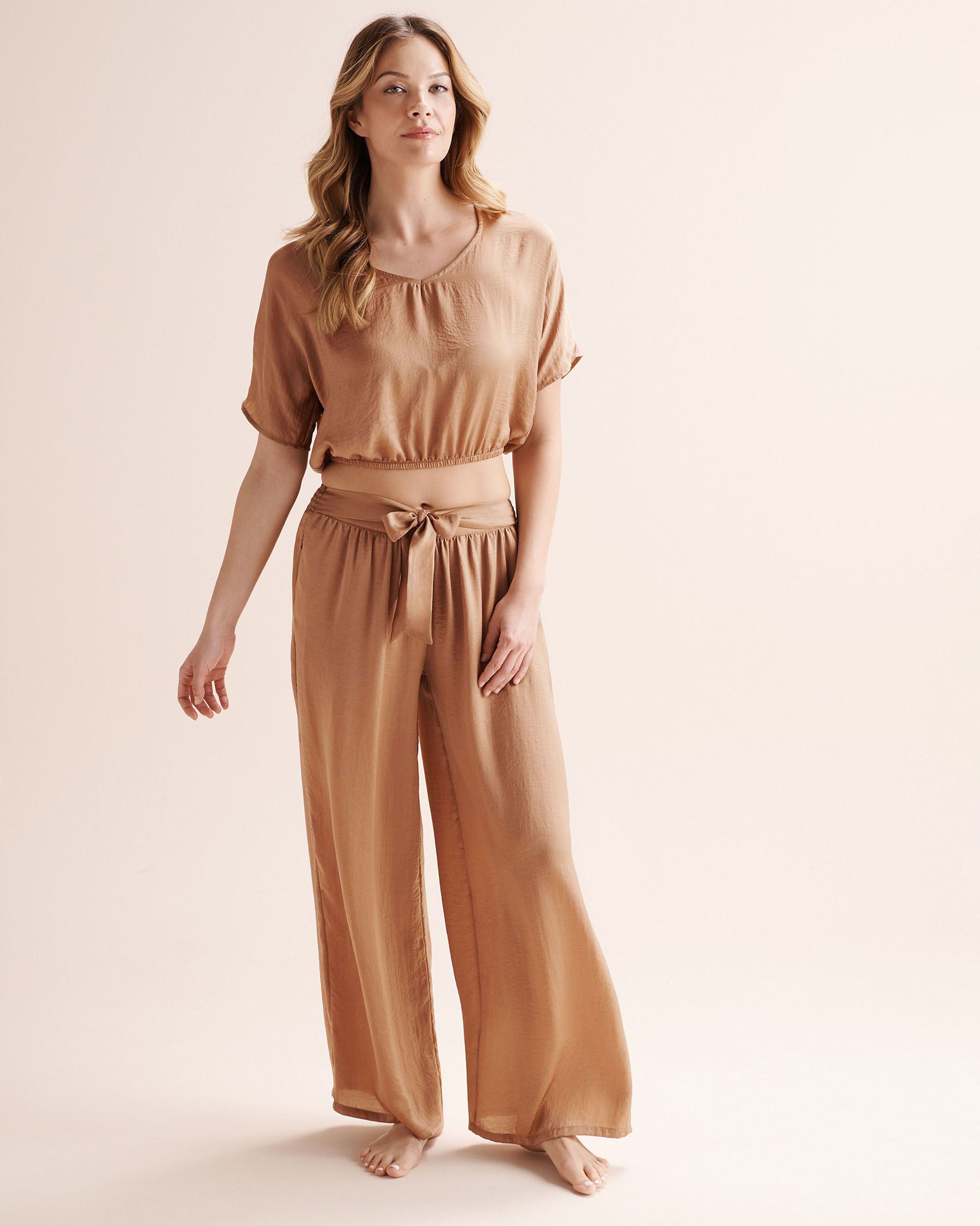 For a chic getaway at the beach or in the city, these pants will be your perfect ally. Crafted in satin with a fluid wide‑leg silhouette, they offer optimal comfort and an effortlessly elegant look. Pair them with the matching crop top!