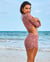 Adjustable shirred side detail with metal rose gold rings at the end