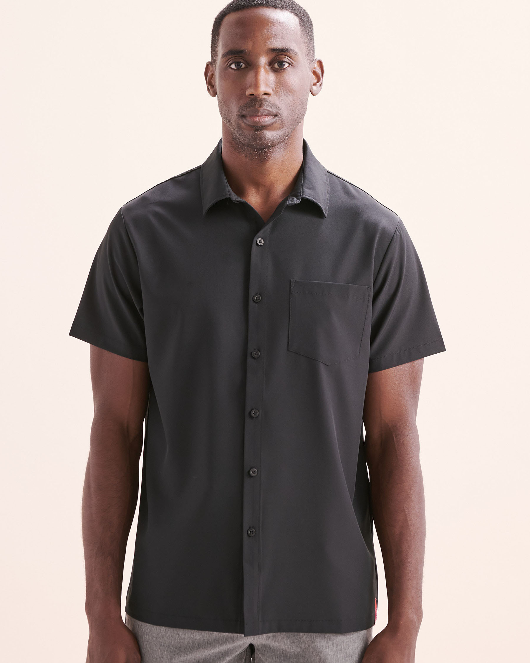 Imagine a piece that embodies simplicity. The Hamabe short-sleeve shirt is timeless with its deep black colour. The front pocket is a practical touch. This shirt moves with you effortlessly, whether you’re in the middle of a meeting or enjoying a coffee on a terrace.