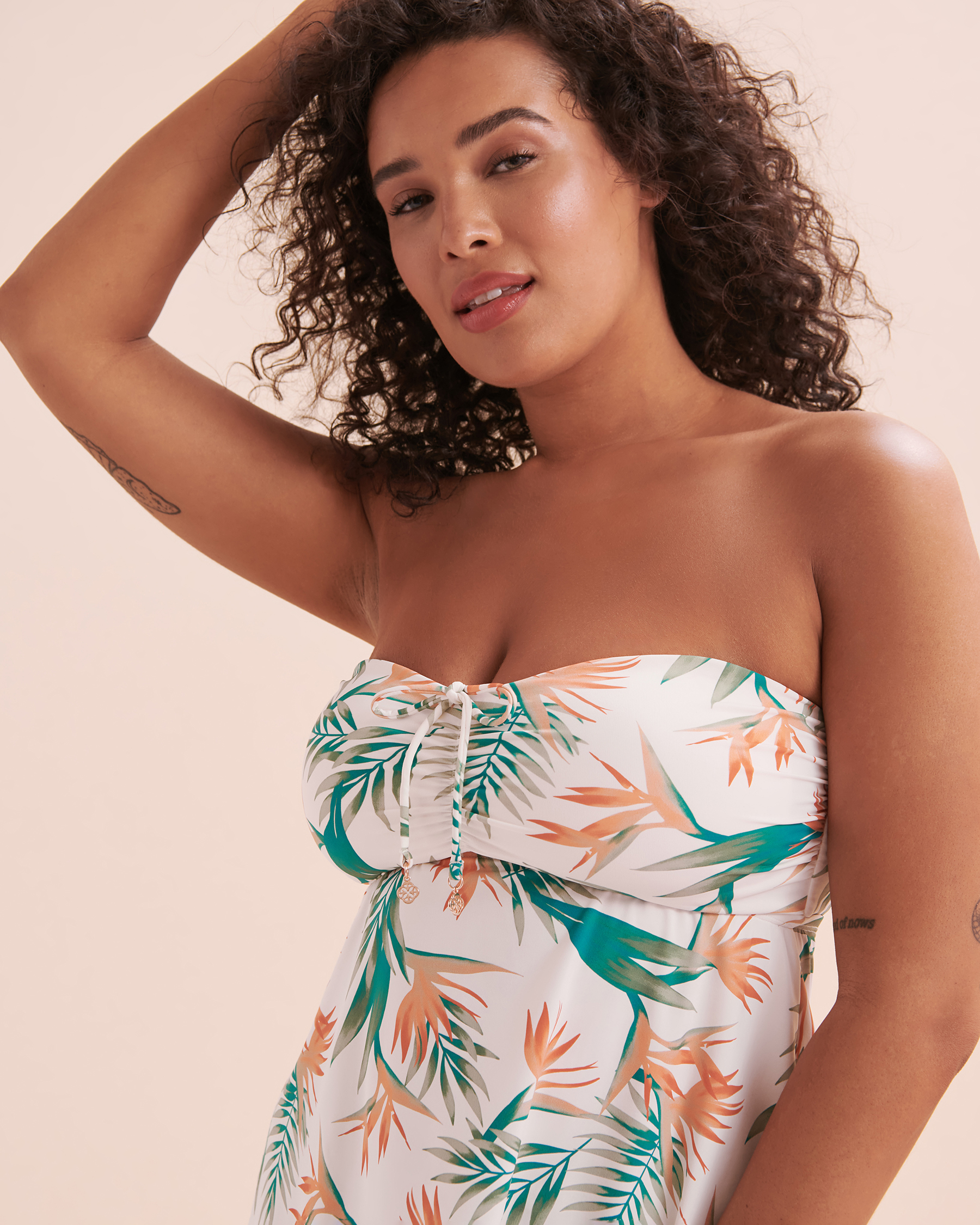Tropical Paradise D Cup Pointed Hem Bandeau Tankini Top