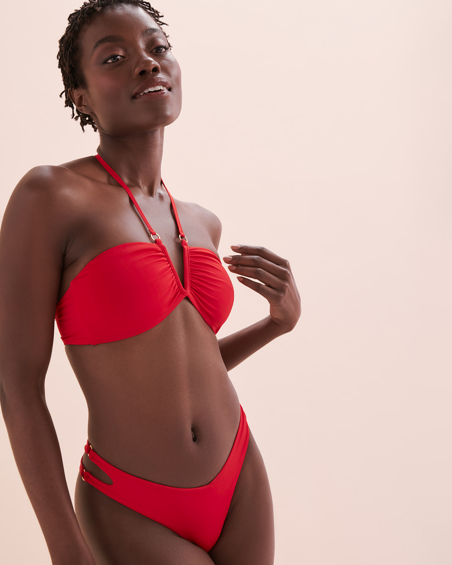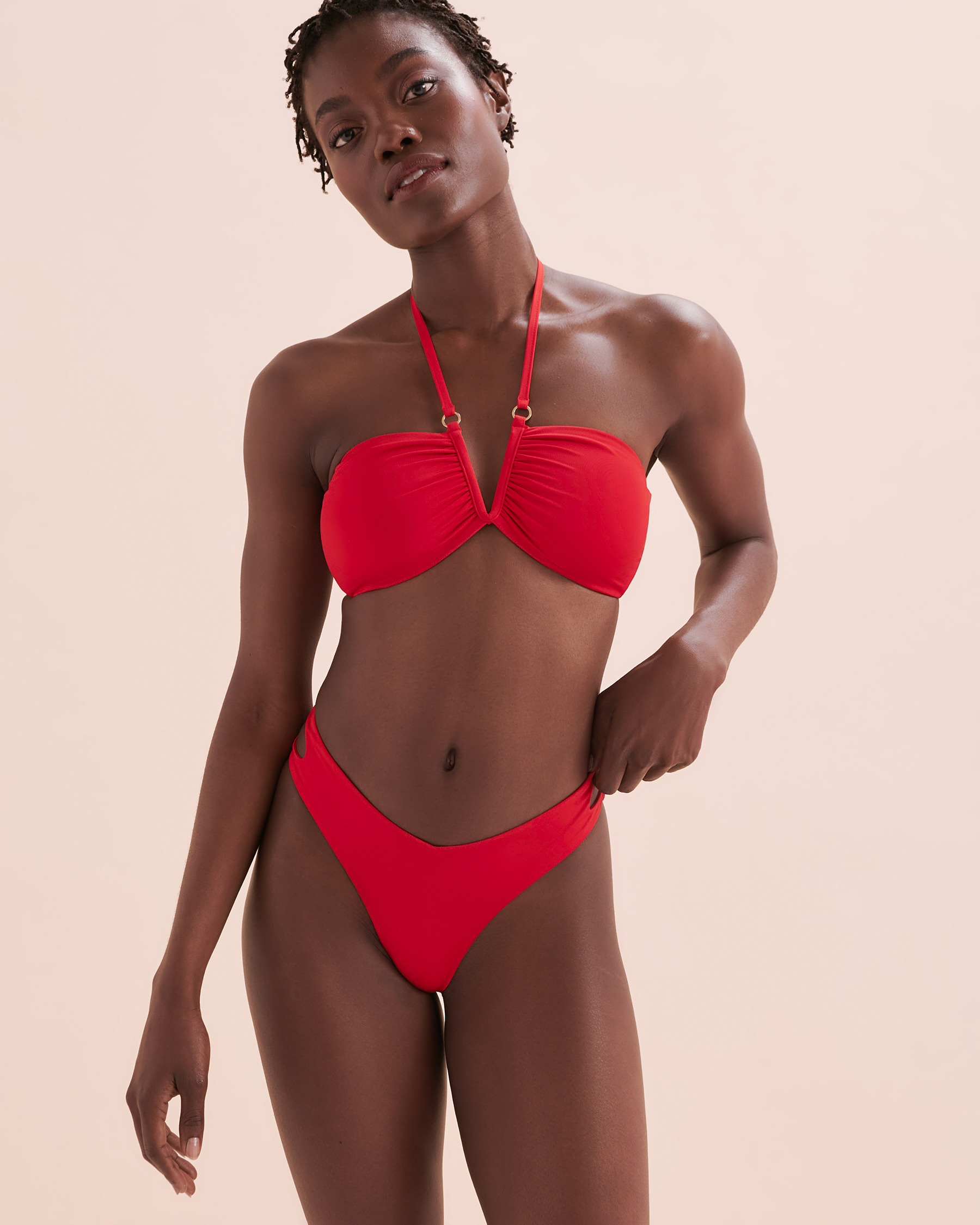Make a splash at the beach in this black bandeau bikini top! Its flattering V-wire makes it the ultimate blend of daring and chic.