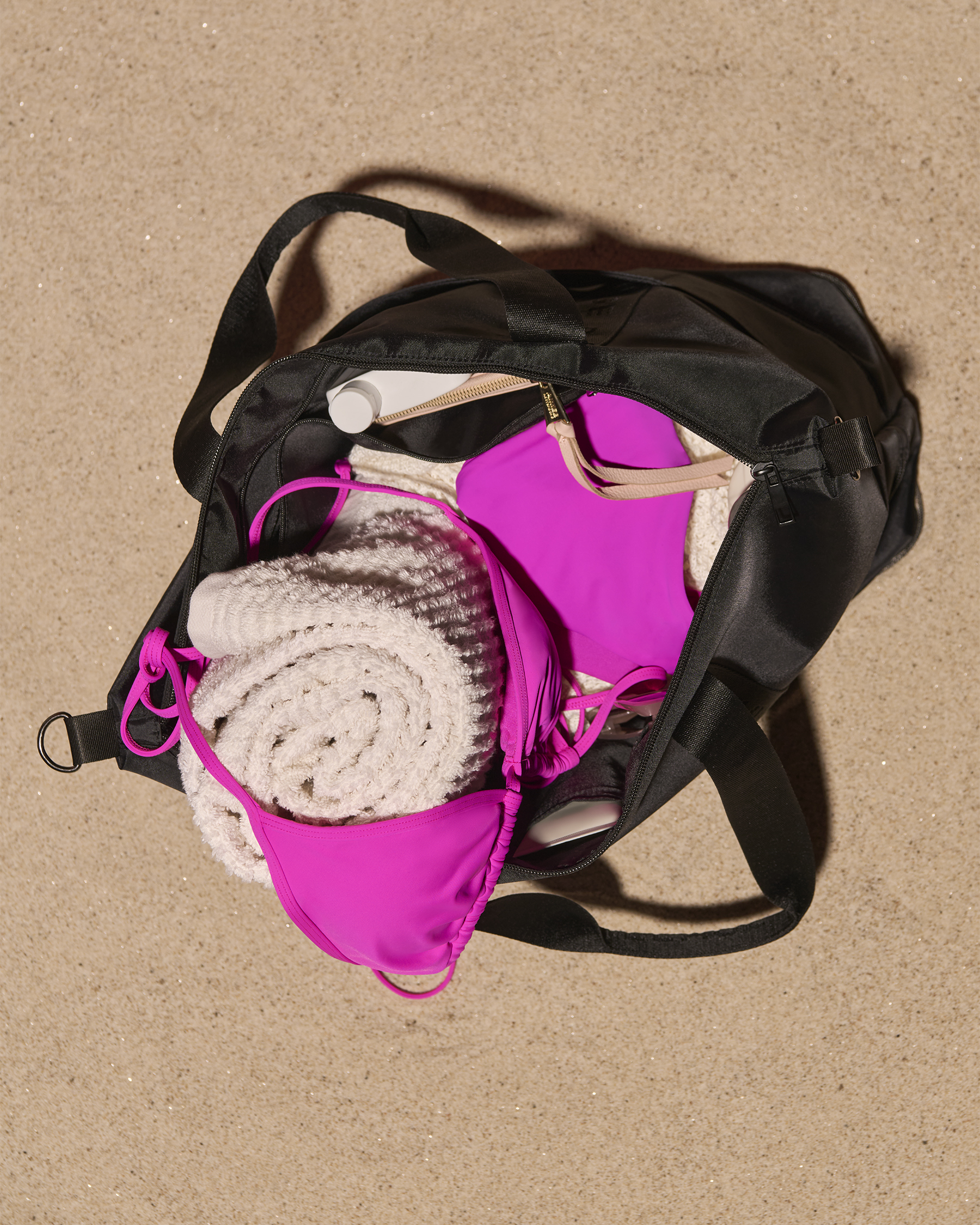 This travel bag will be your best companion for a spontaneous weekend getaway! Its top and bottom zippers give you easy access to your belongings, while the interior pocket and bottle holder elastic keep everything neatly in place. Plus, enjoy its generous side pockets to keep your essentials within reach.