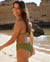 Plongez dans l'eau avec le bas de bikini cheeky texture nid d'abeilles de Tropik. Ce bas vert olive a une coupe mi haute et une couverture arrière légère. Il a aussi une petite bande à la taille.