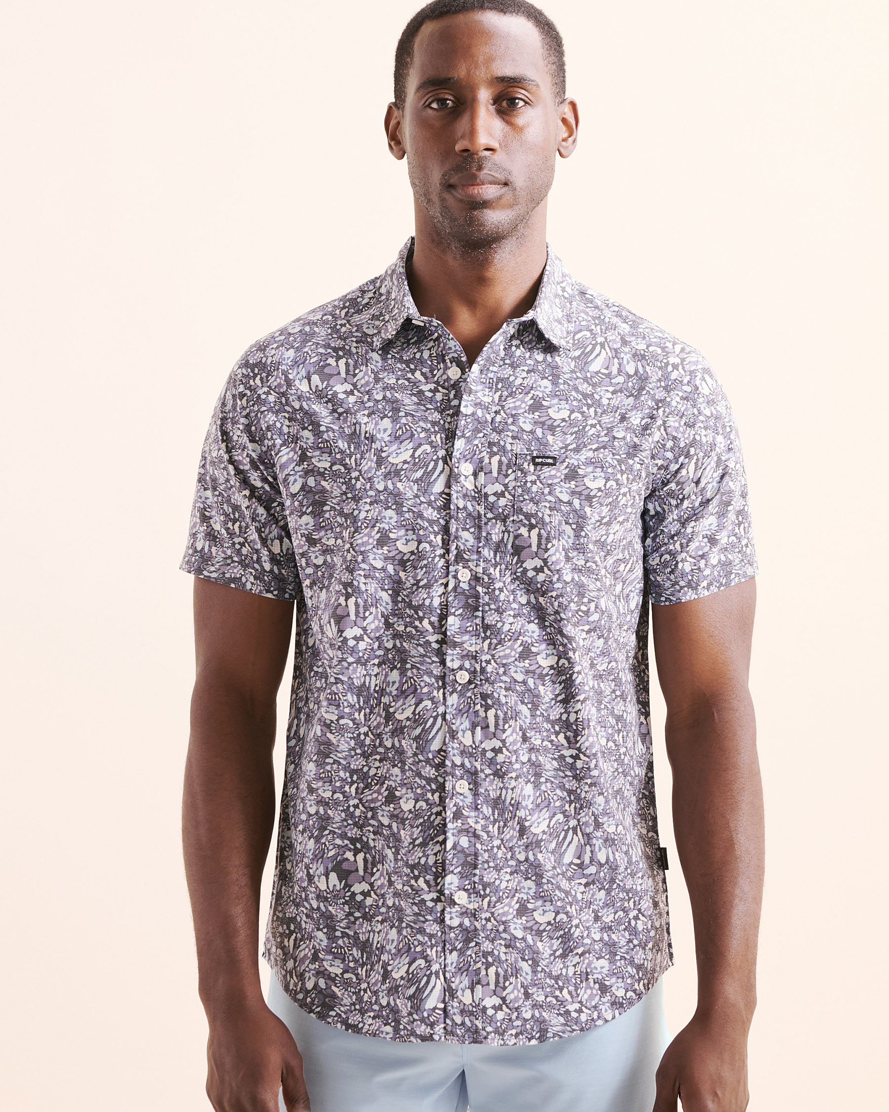 La chemise Fun Times à manches courtes est unique avec son motif abstrait bleu et blanc. Sa coupe standard décontractée, son encolure boutonnée et sa poche poitrine en font un incontournable, parfait pour une sortie en bord de mer ou un moment convivial entre amis.