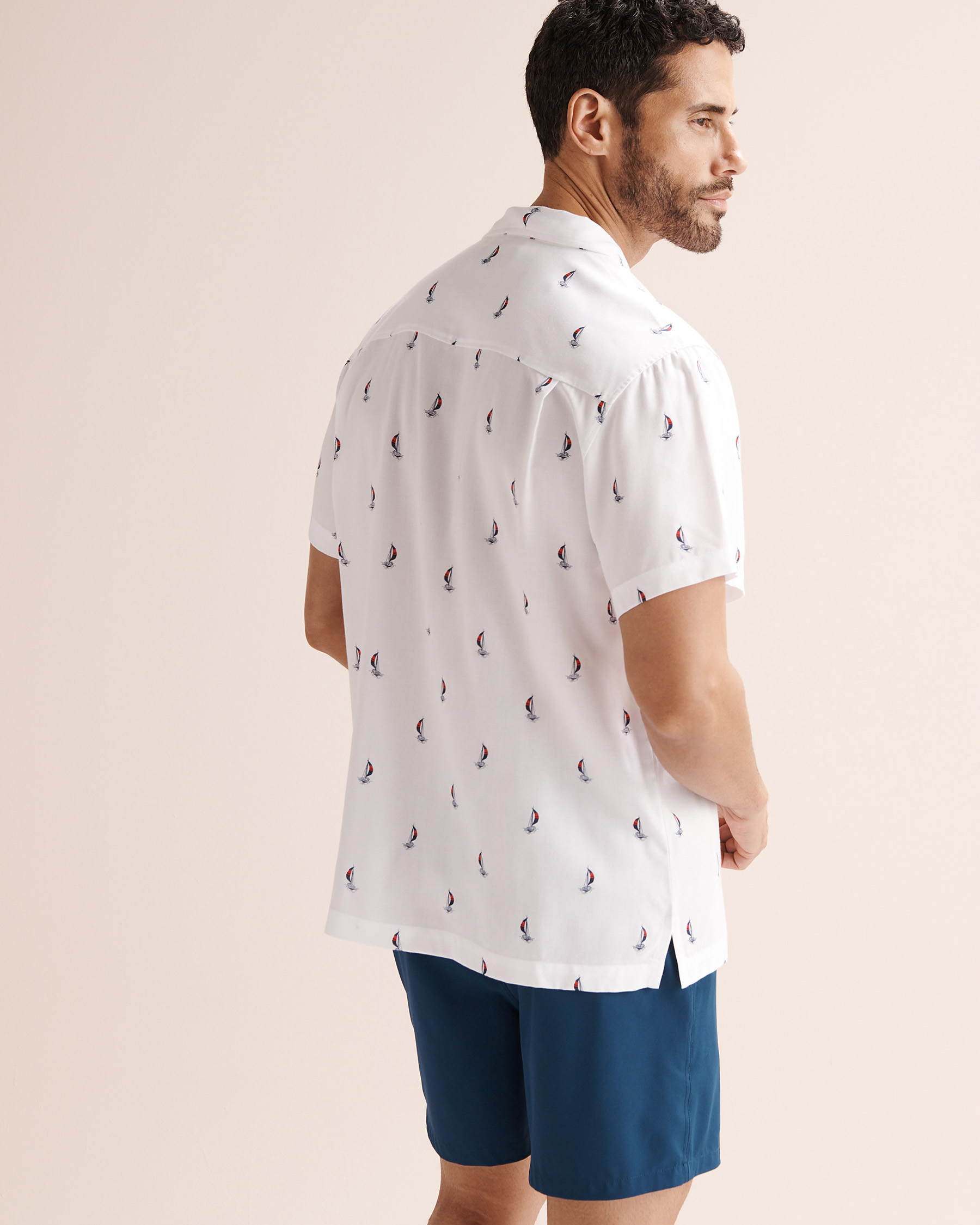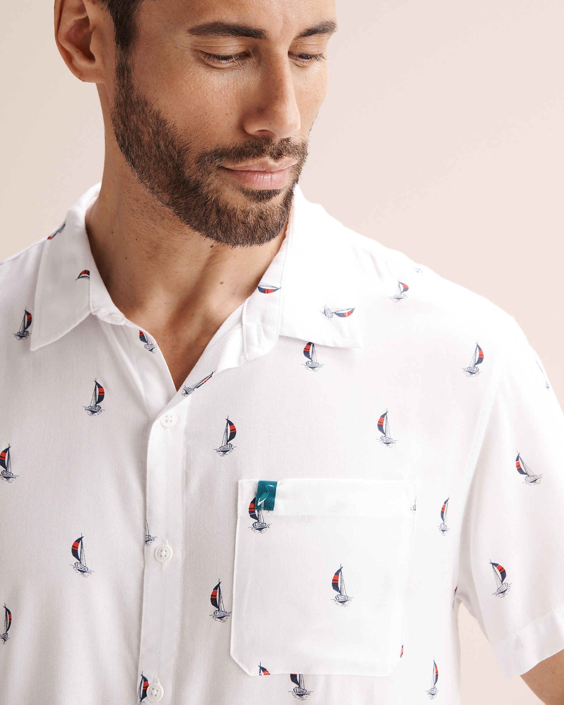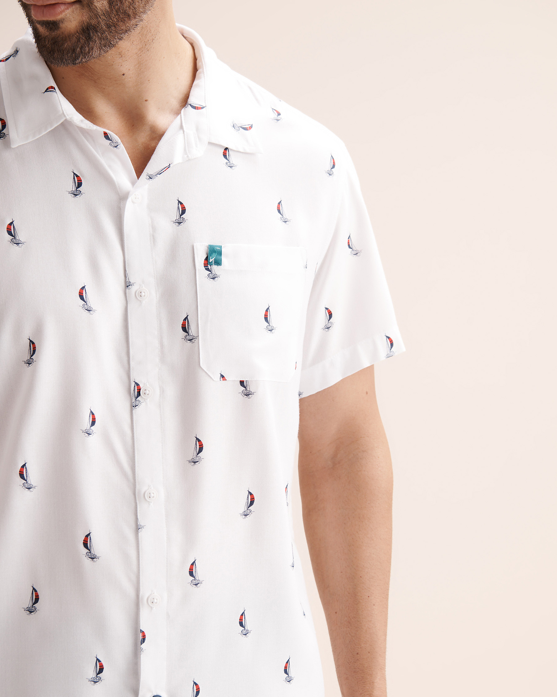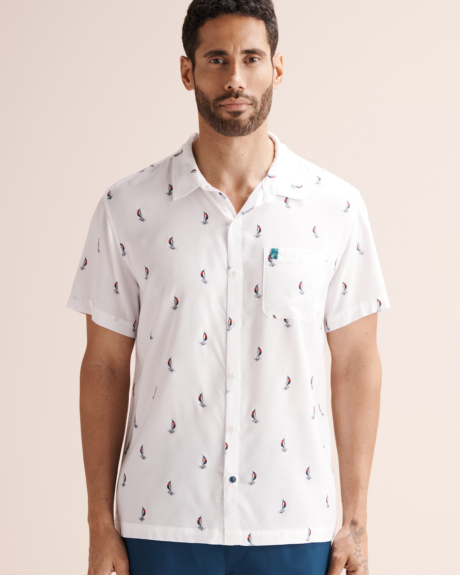 Soyez décontracté au bord de l’océan en affichant un style sophistiqué avec cette chemise à manches courtes. Son motif de bateaux évoque la brise marine, tandis que la fermeture boutonnée à l’avant apporte une touche plus classique. La poche avant ornée du logo et les fentes latérales ajoutent du caractère fidèle à la marque.
