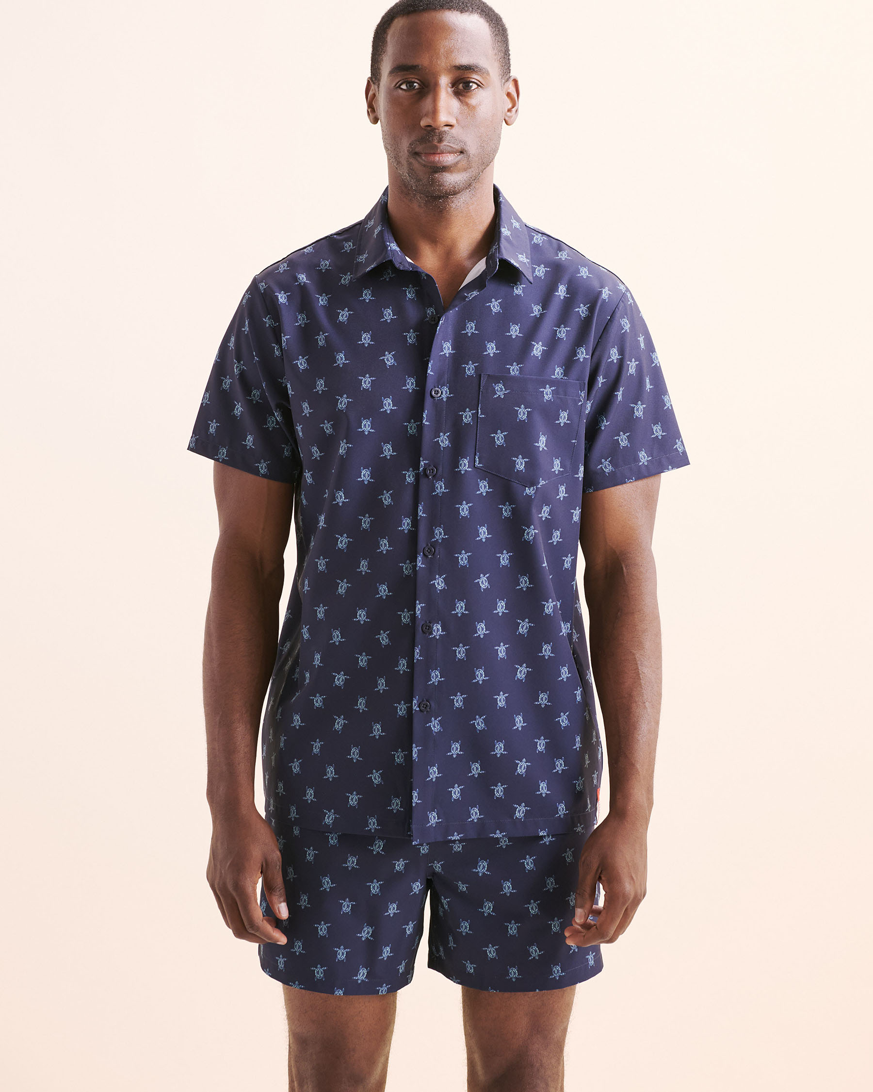 Faites sensation sous le soleil avec cette chemise à manches courtes, un concentré de fraîcheur taillé pour l’été. Sur fond d’azur, une scène de tortues aquatiques évoquant l’océan inspire irrésistiblement à s’y baigner. Sa coupe désinvolte, son encolure boutonnée ornée de boutons et sa poche avant ajoutent la touche décontractée qu’on aime. À porter ouverte ou fermée, avec un maillot volley pour un look plein d’attitudes.