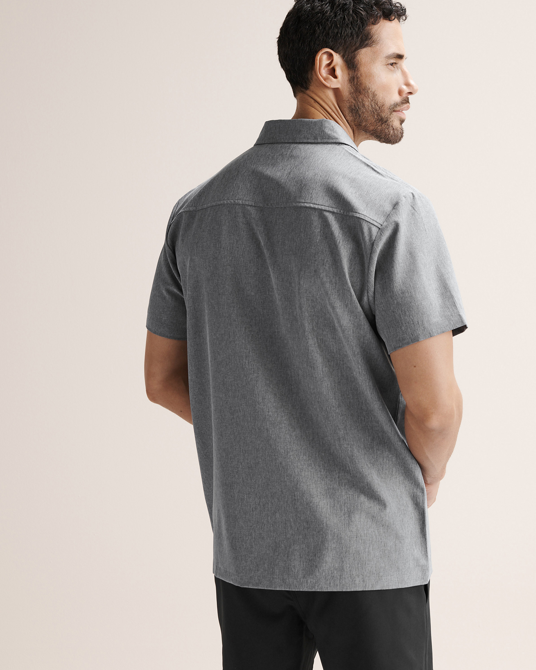 Voici la chemise qui vous accompagne partout sans jamais vous laisser tomber. Avec sa teinte bleu marin chinée, cette chemise à manches courtes mêle style et fonctionnalité avec une simplicité désarmante. Grâce à sa composition souple et respirante, cette chemise bouge avec vous du matin au soir : réunion, apéro, balade improvisée, elle s’adapte aussi vite que vos plans. Une pièce hybride, polyvalente et joyeusement décontractée, prête à rejoindre vos indispensables de tous les jours.