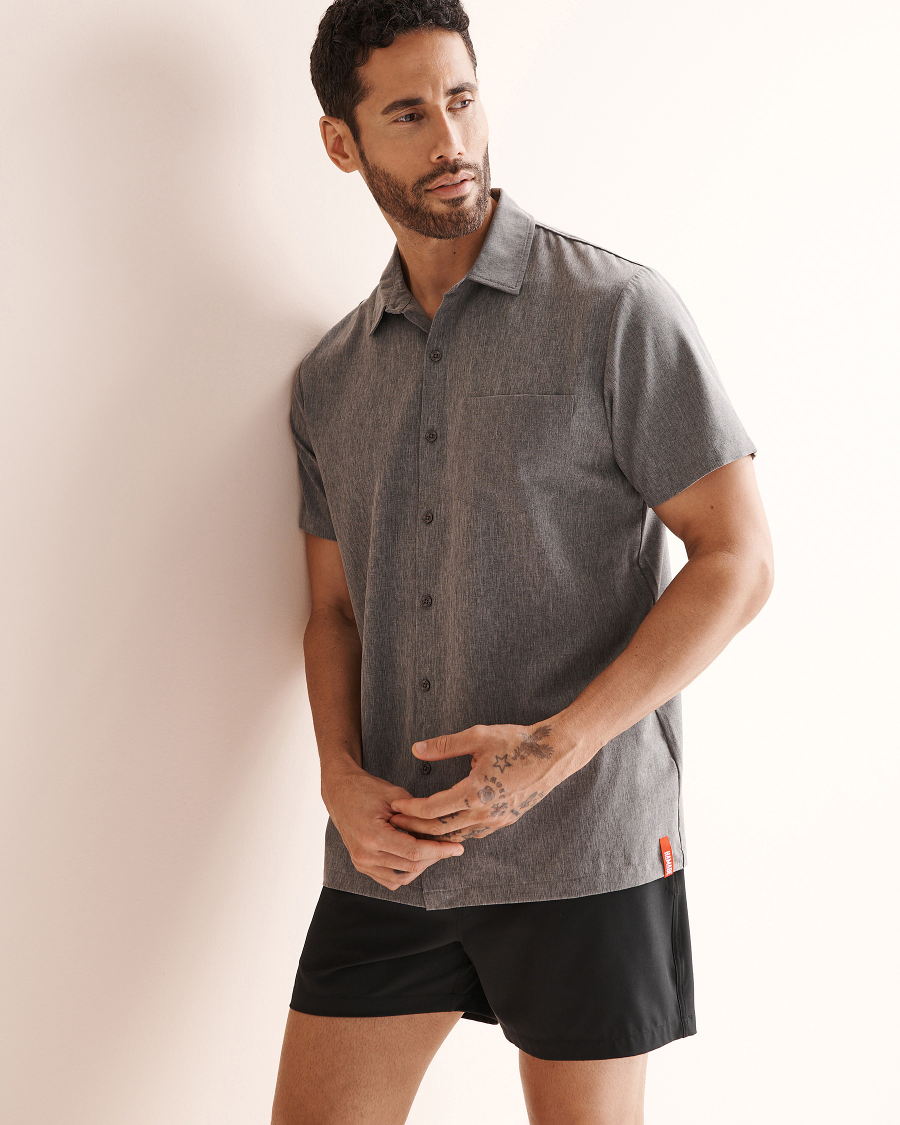 Voici la chemise qui vous accompagne partout sans jamais vous laisser tomber. Avec sa teinte gris chiné, cette chemise à manches courtes mêle style et fonctionnalité avec une simplicité désarmante. Grâce à sa composition souple et respirante, cette chemise bouge avec vous du matin au soir : réunion, apéro, balade improvisée, elle s’adapte aussi vite que vos plans. Une pièce hybride, polyvalente et joyeusement décontractée, prête à rejoindre vos indispensables de tous les jours.