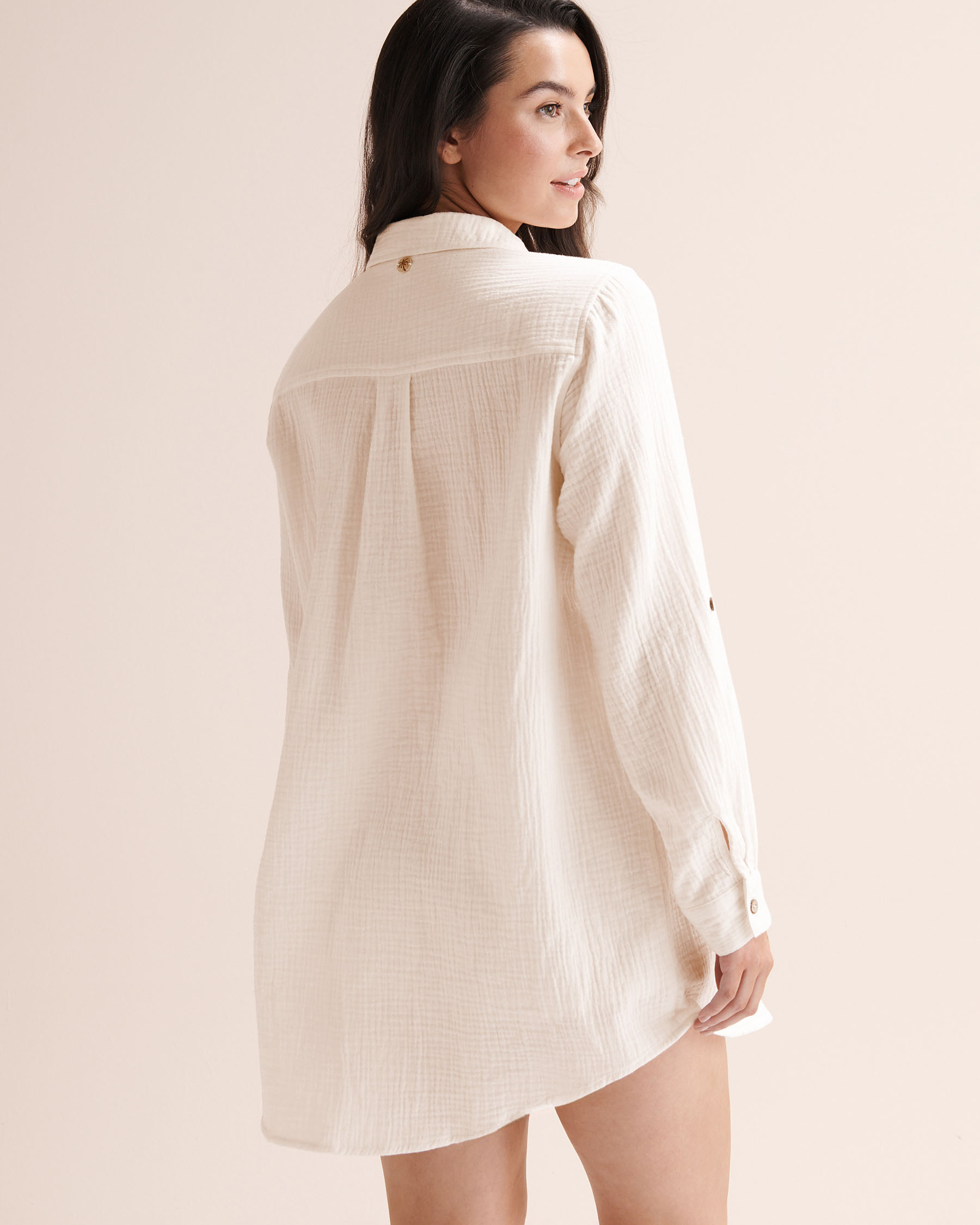 Adoptez un look élégant avec cette chemise texturée, la pièce parfaite pour toutes les occasions ! Le tissu gaufré apporte une touche raffinée, tandis que les boutons effet marbré ajoutent un joli contraste moderne. Pratique, cette chemise possède des boutons sur les manches pour les retrousser selon votre humeur. De couleur neutre, elle s’associe à merveille avec n’importe quel short, pour un look sans effort.