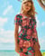 Motif floral exotique rose cerise et bleu