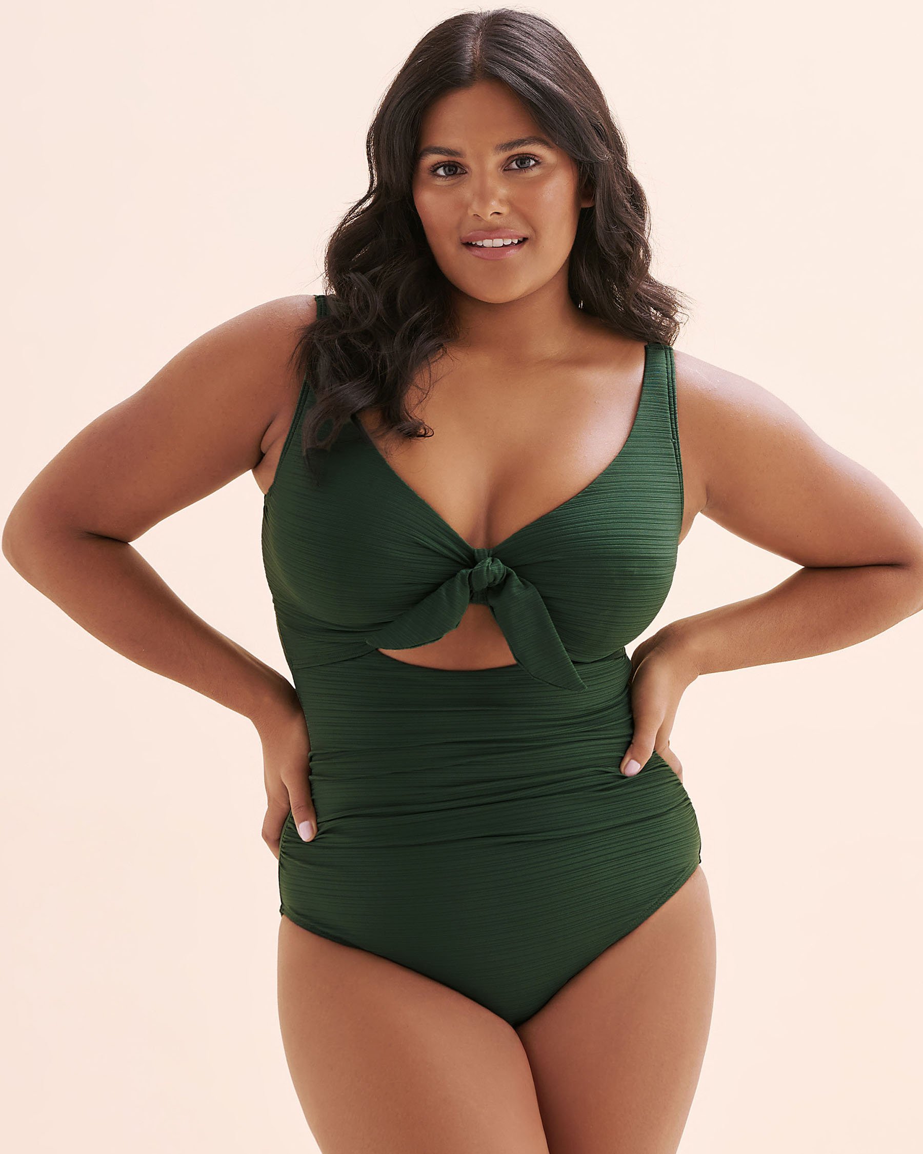 Un air de sophistication. Vivez la vie avec l'art du luxe dans cet une-pièce en tissu texturé vert, l'un des styles les plus vendus d'Artesands ! Cet inoubliable une-pièce sophistiqué et luxueux est la combinaison la plus flatteuse qui soit, en plus d'offrir des armatures qui conviennent aux bonnets D à DD.