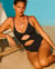 Avec ses détails noués et ses ouvertures, ce maillot une-pièce apporte la touche d'élégance tendance que vos courbes méritent!