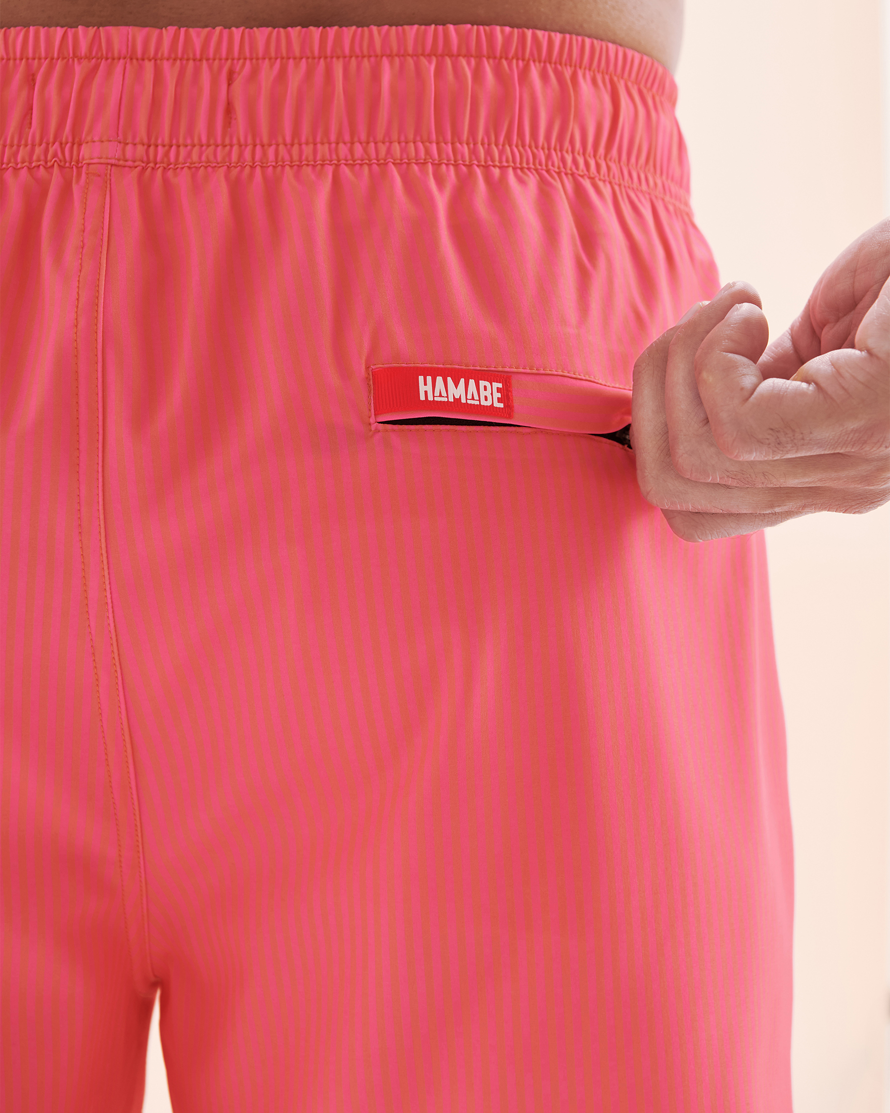 Amusez-vous avec style grâce à ce short de volley ultra cool signé Hamabe ! Avec sa taille élastique et son cordon de serrage, il s’ajuste parfaitement pour te laisser bouger librement. Son coloris rose vif avec de fines rayures apporte une touche fraîche et moderne qui dynamise votre look à chaque match.