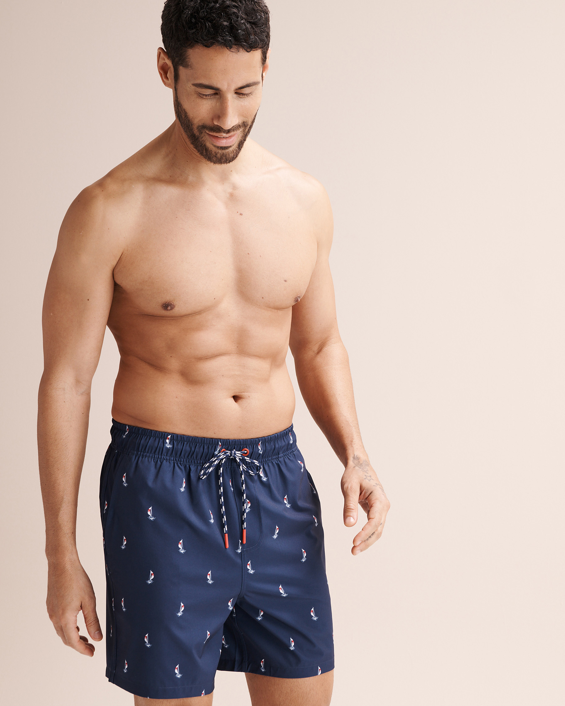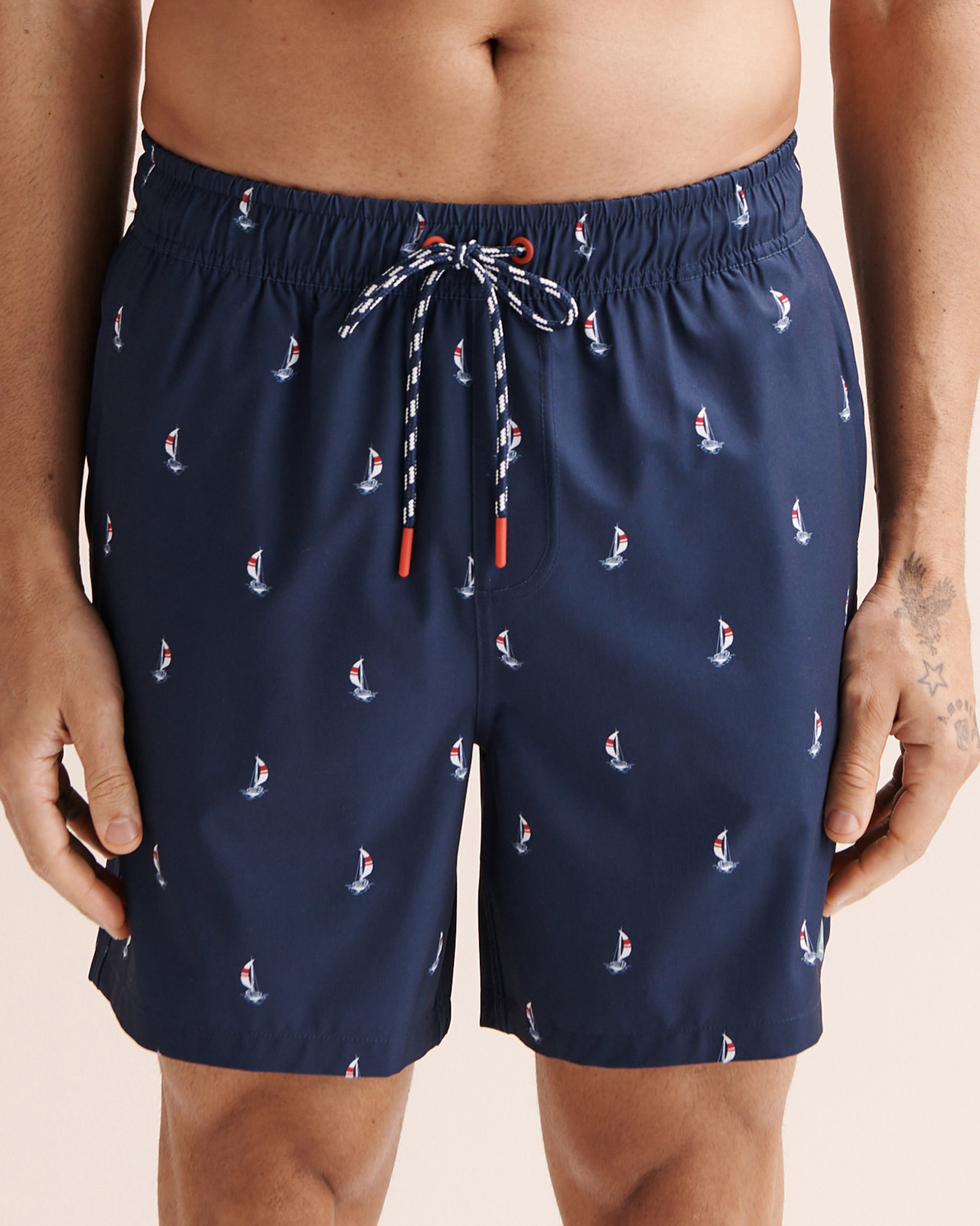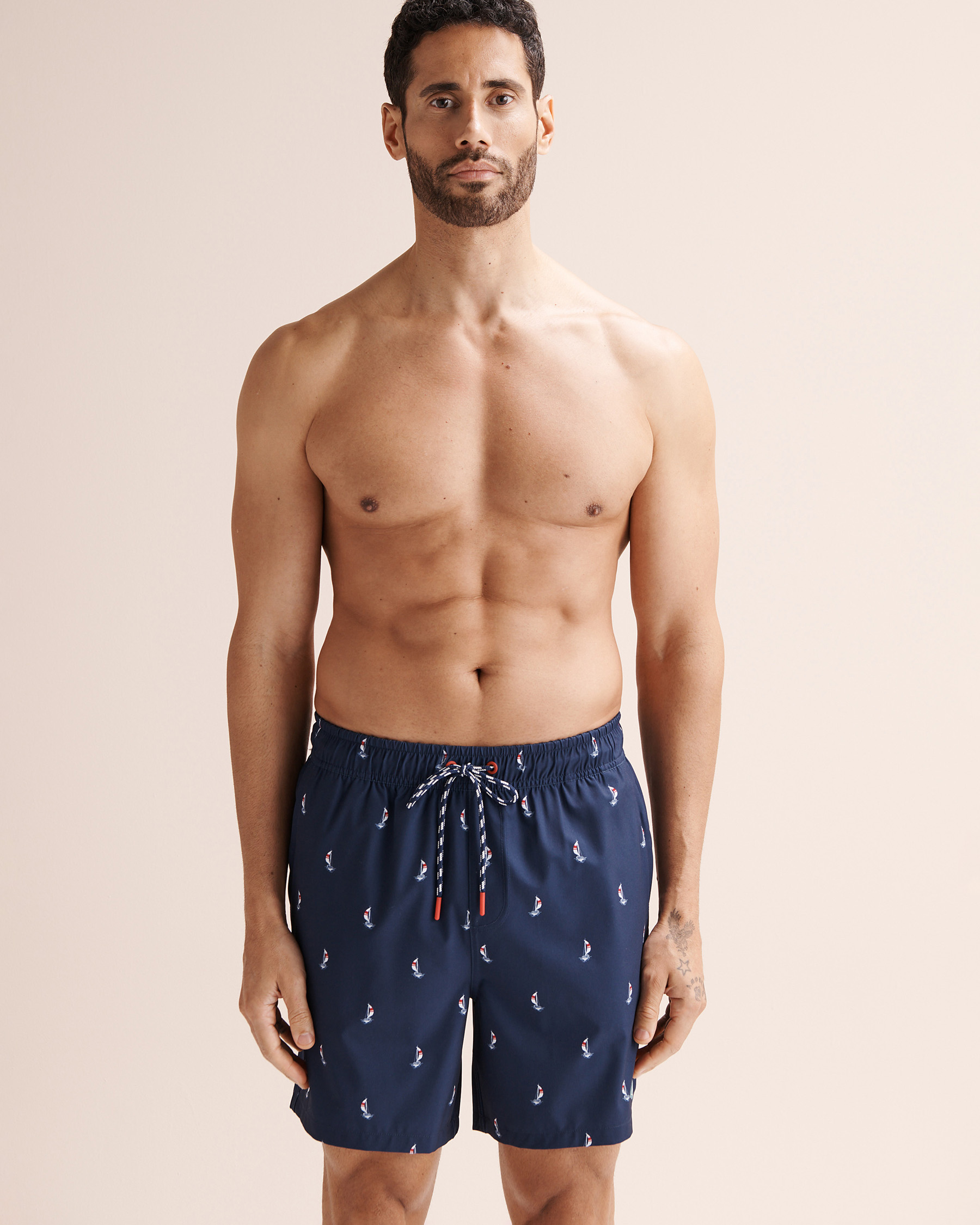 Ce short volley bleu au motif de bateaux est particulièrement moderne. Sa doublure intérieure longue accompagne vos mouvements avec fluidité, tandis que ses poches zippées gardent vos essentiels en toute sécurité.