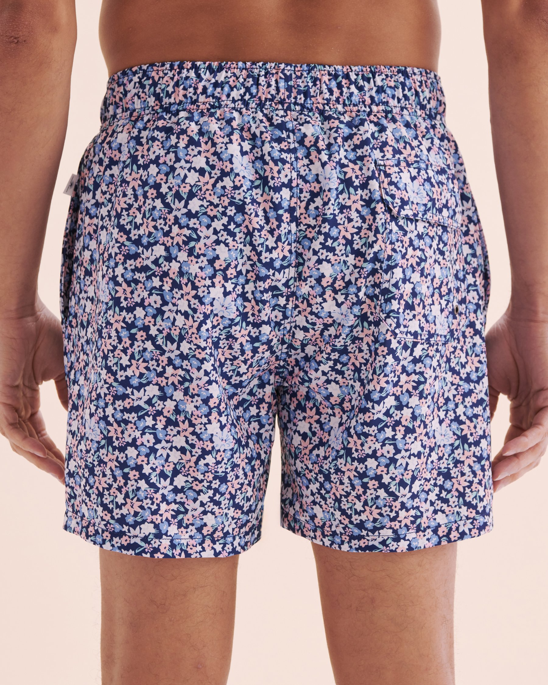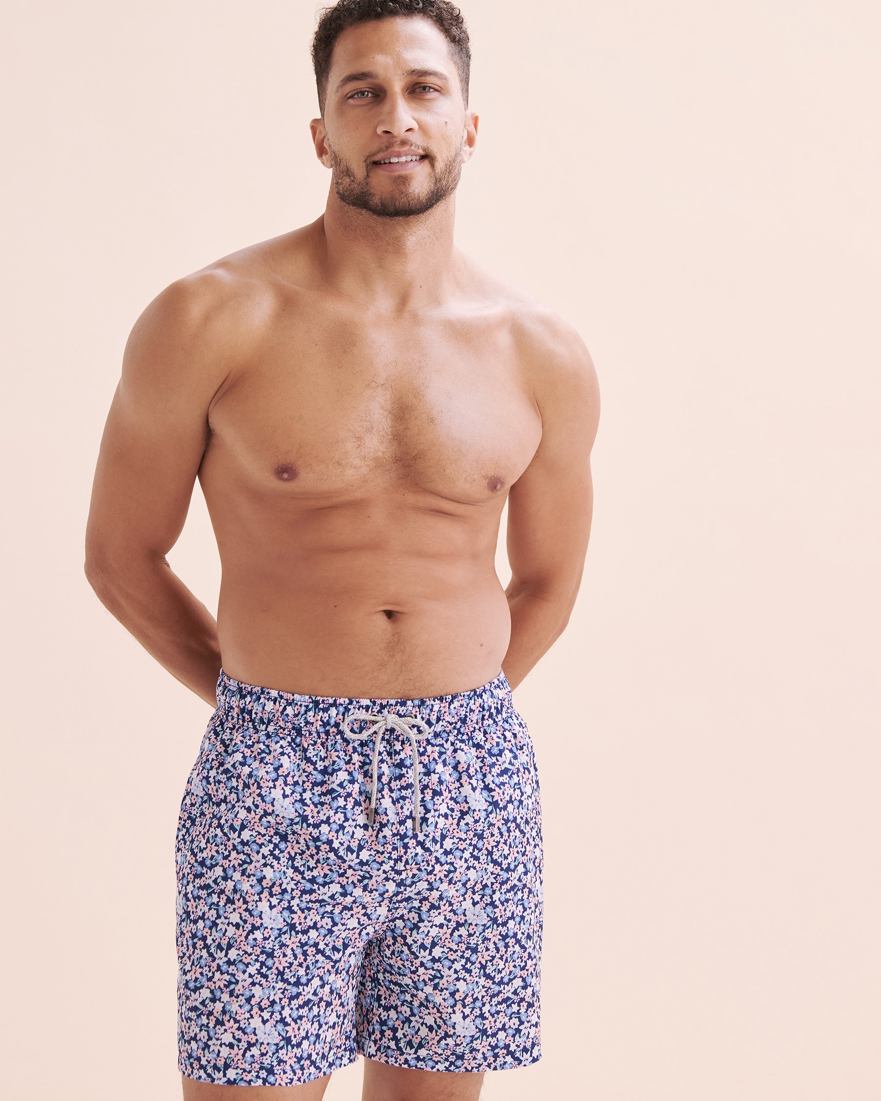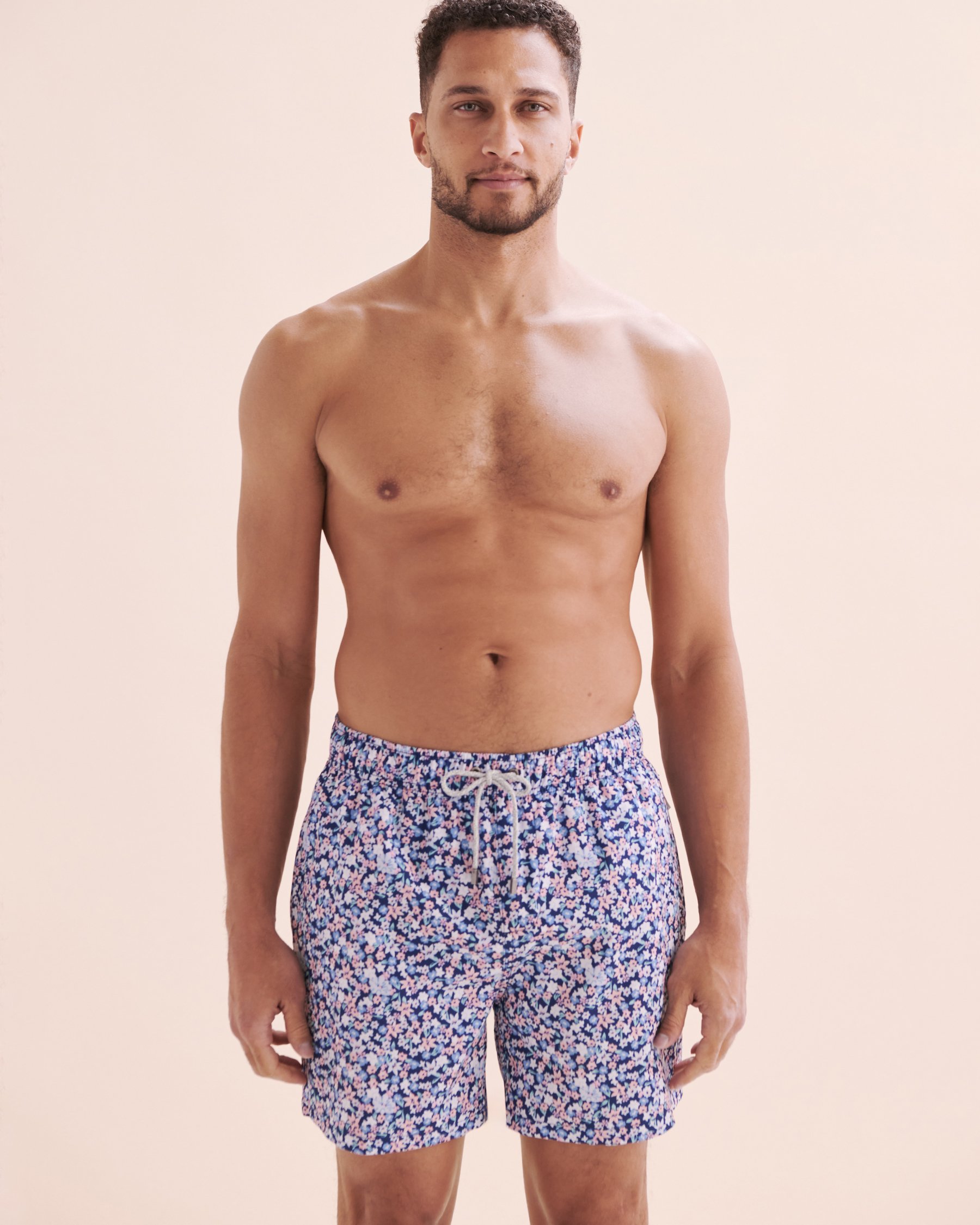 Motif floral blanc et rose. Composition : 90 % polyester et 10 % élasthanne