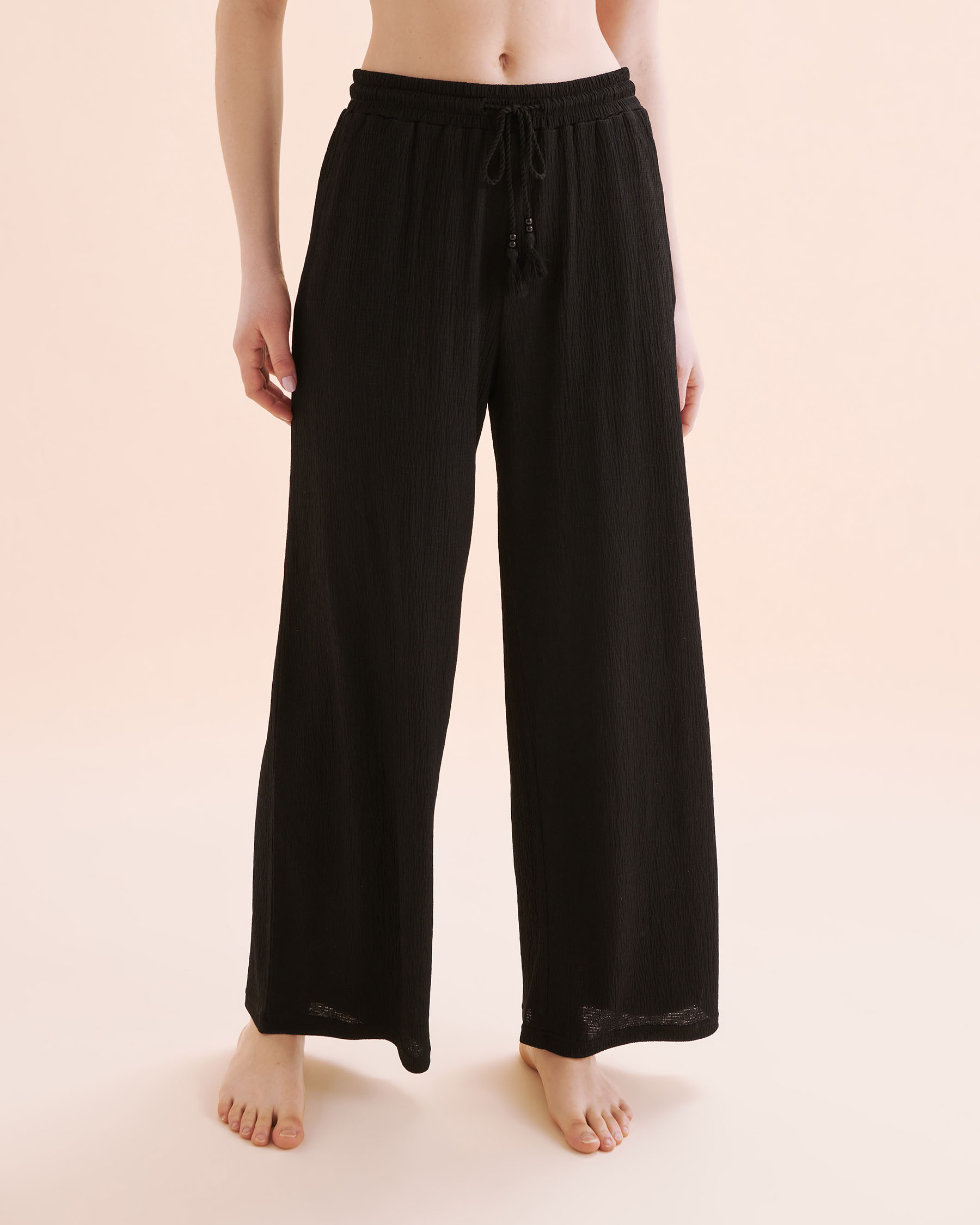 Laissez-vous séduire par ce pantalon en polyester plissé, parfait pour ajouter une touche d'élégance à votre garde-robe ! Avec son cordon ajustable orné de pompons, il s’adapte à votre style avec une touche ludique. Les poches latérales sont idéales pour glisser vos petits essentiels, tandis que sa couleur noire intemporelle vous assure une allure sophistiquée sans effort.