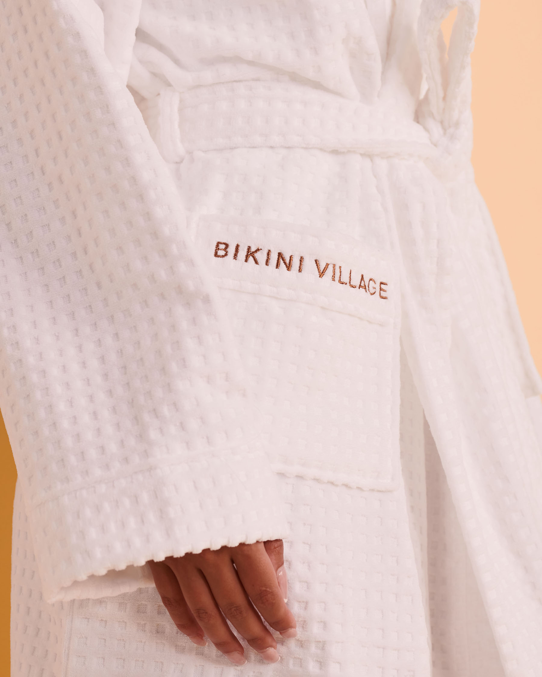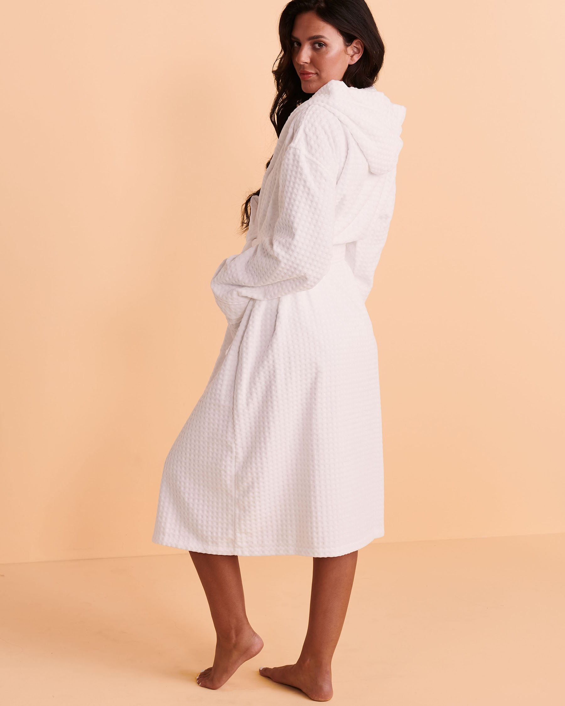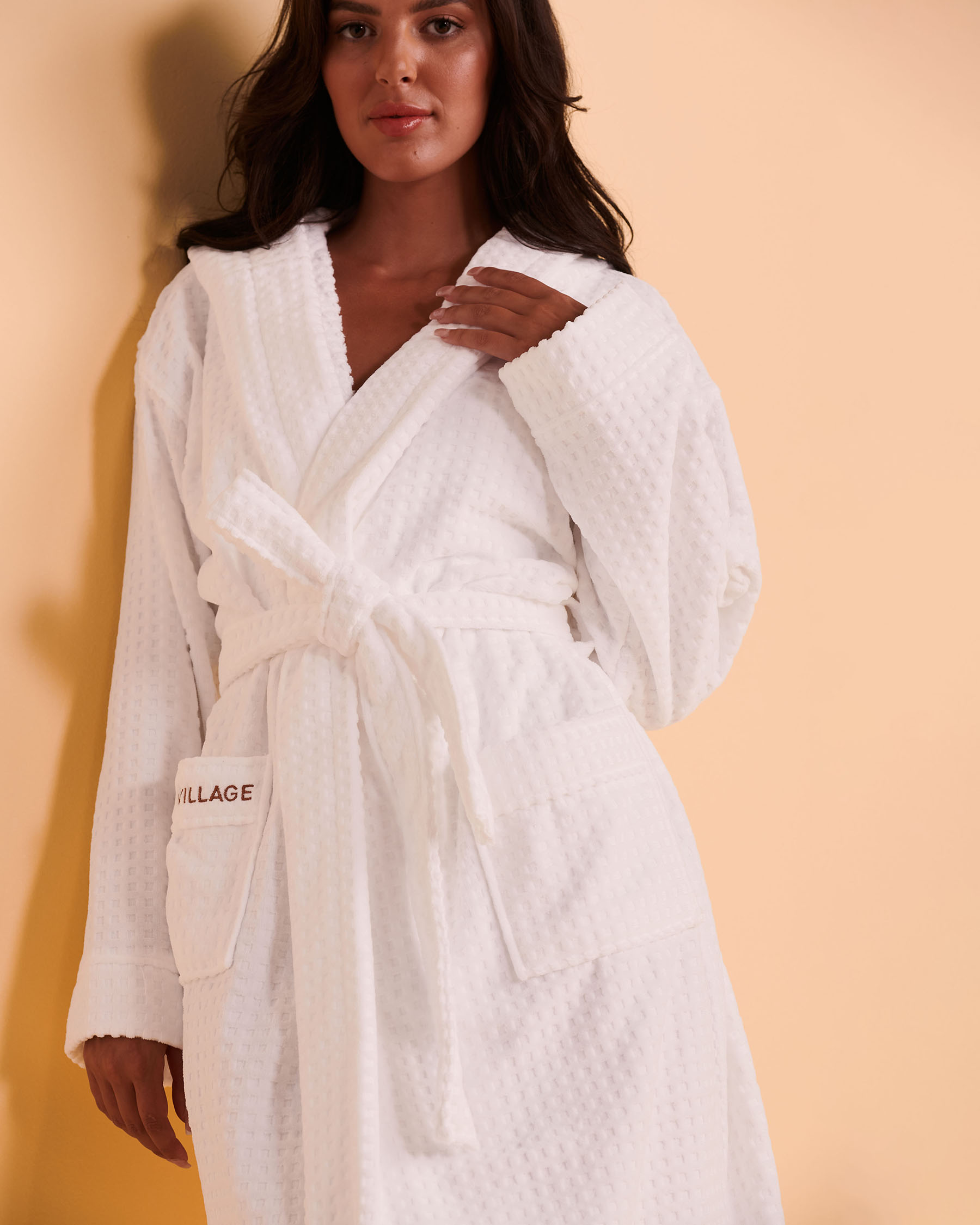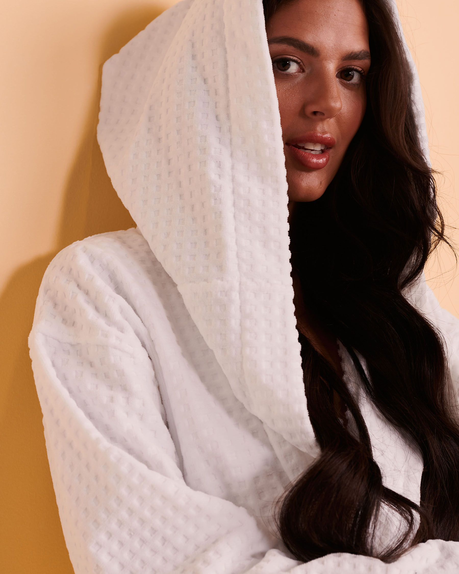 Classique robe de chambre en ratine gaufrée avec capuchon.