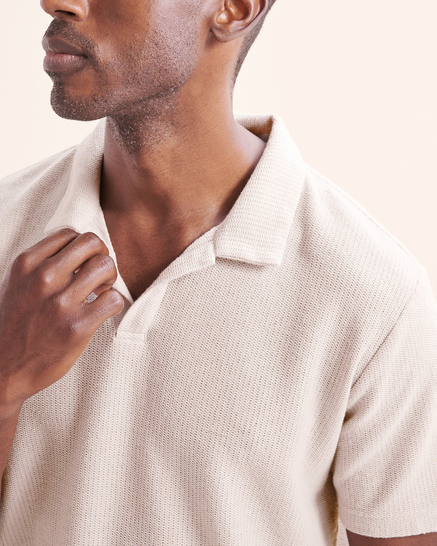 Ce polo en piqué beige est votre allié pour des journées décontractées. Avec ses manches courtes, son col boutonné et sa coupe relax, il est le choix sans effort.