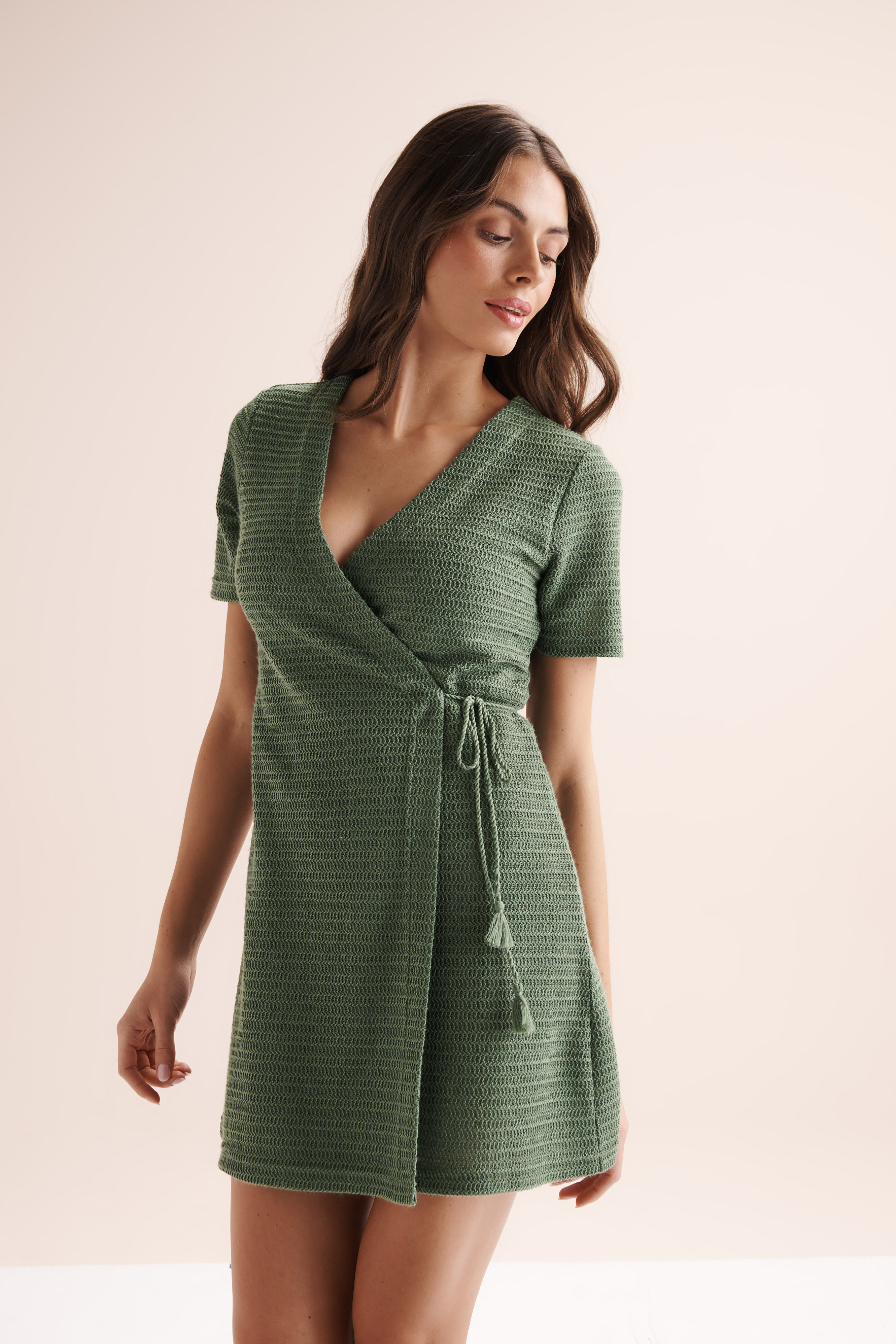 Quand le chic rencontre l’esprit bord de mer, cela donne cette robe portefeuille en crochet signée Off the Beach. Avec sa coupe flatteuse et sa matière ultra-légère, c’est la pièce rêvée pour flâner entre sable chaud et un apéro au soleil couchant. La robe s’ajuste tout en douceur, pour un tombé fluide et naturel. Dans sa teinte verte, c'est une robe pour mille occasions : enfilez-la par-dessus un maillot pour un look bohème raffiné ou accessoirisez-la pour une allure plus urbaine.