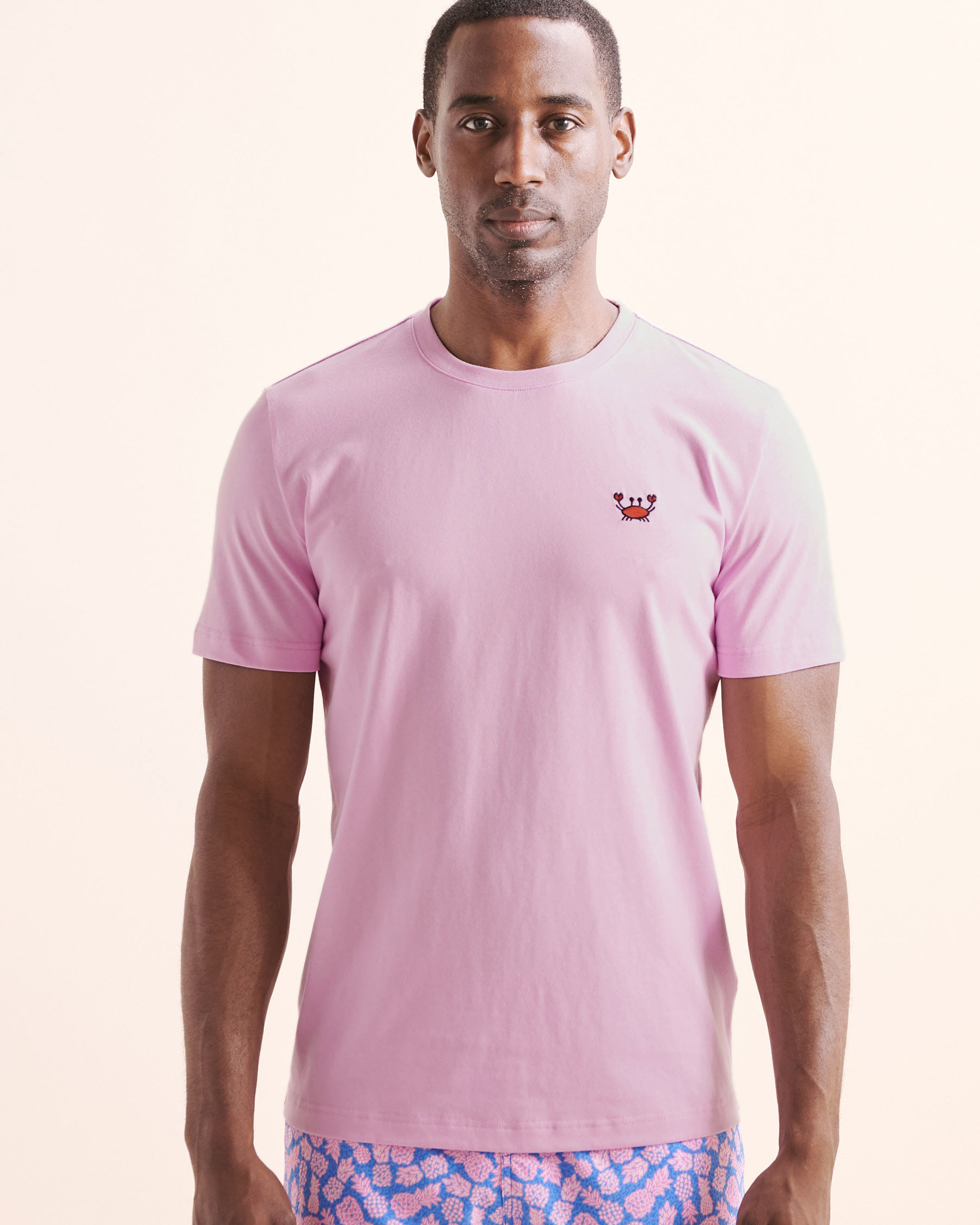 Ajoutez une touche ludique à votre look avec ce t-shirt à manches courtes orné d’un petit crabe imprimé sur la poitrine. Sa coupe décontractée et son tissu doux en font un essentiel confortable. Un clin d’œil discret au bord de mer, facile à porter et à associer.