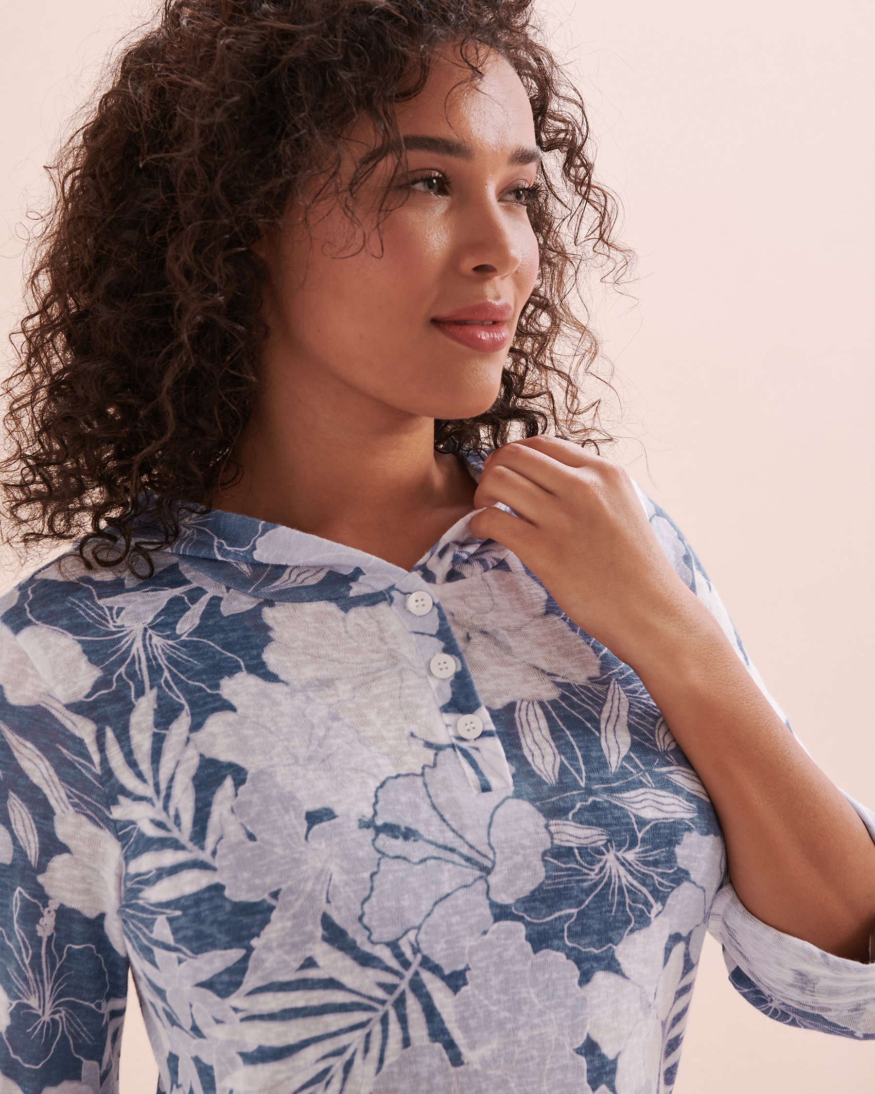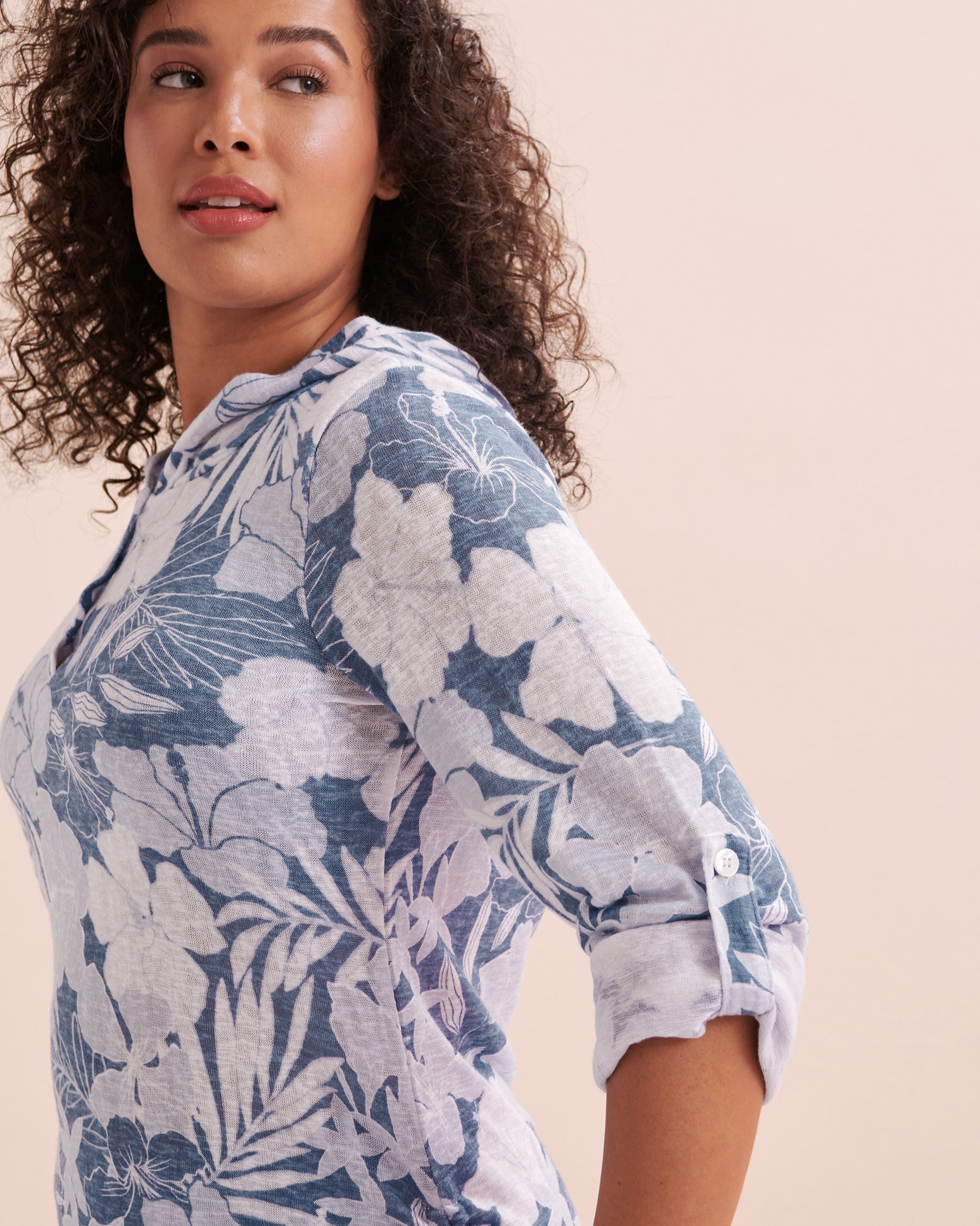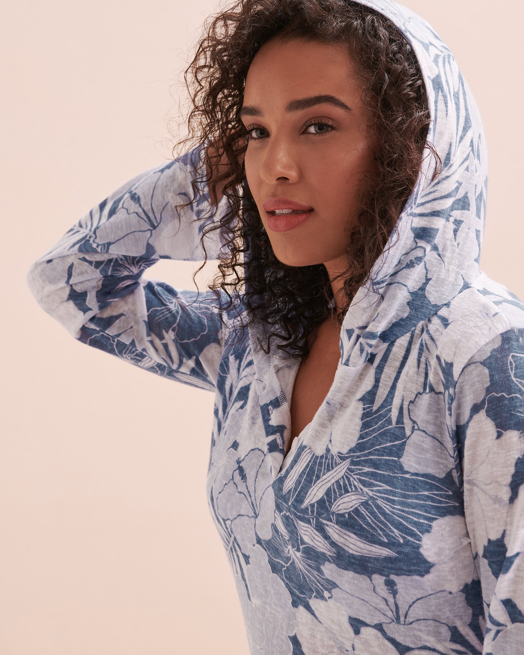 Enfilez la tunique à capuchon d'Eau de Sea pour commencer vos vacances à la mode. Cet habit, décoré d'un imprimé fleuri bleu, est parfait pour mettre par-dessus un maillot, ou même pour un souper sur une terrasse. Ses manches longues rétractables et ses cordons ajustables sur les côtés vous assureront un confort garanti, ainsi que de modifier la tenue à votre gout.