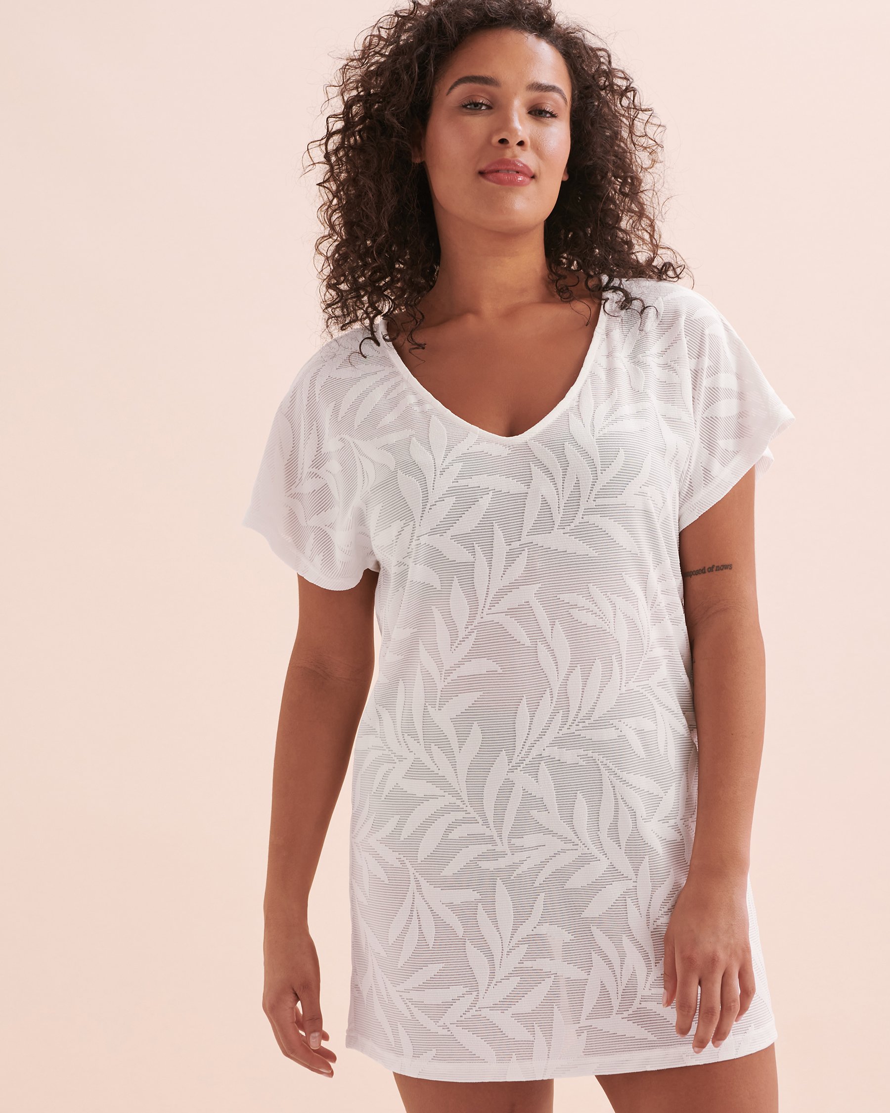 Tunique manches courtes à motif à feuilles