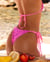 This minimalist tanga-style bottom features a low-rise cut and light back coverage, perfect for those who love a clean, effortless look. Adjustable side ties adorned with delicate gold flower charms add a glamorous touch. Designed for breathability, it offers a seamless finish for optimal comfort. You can wear it low or high on the hips depending on your desired look. Its pink and purple floral print brings a playful vibe to your sun-filled days.