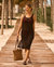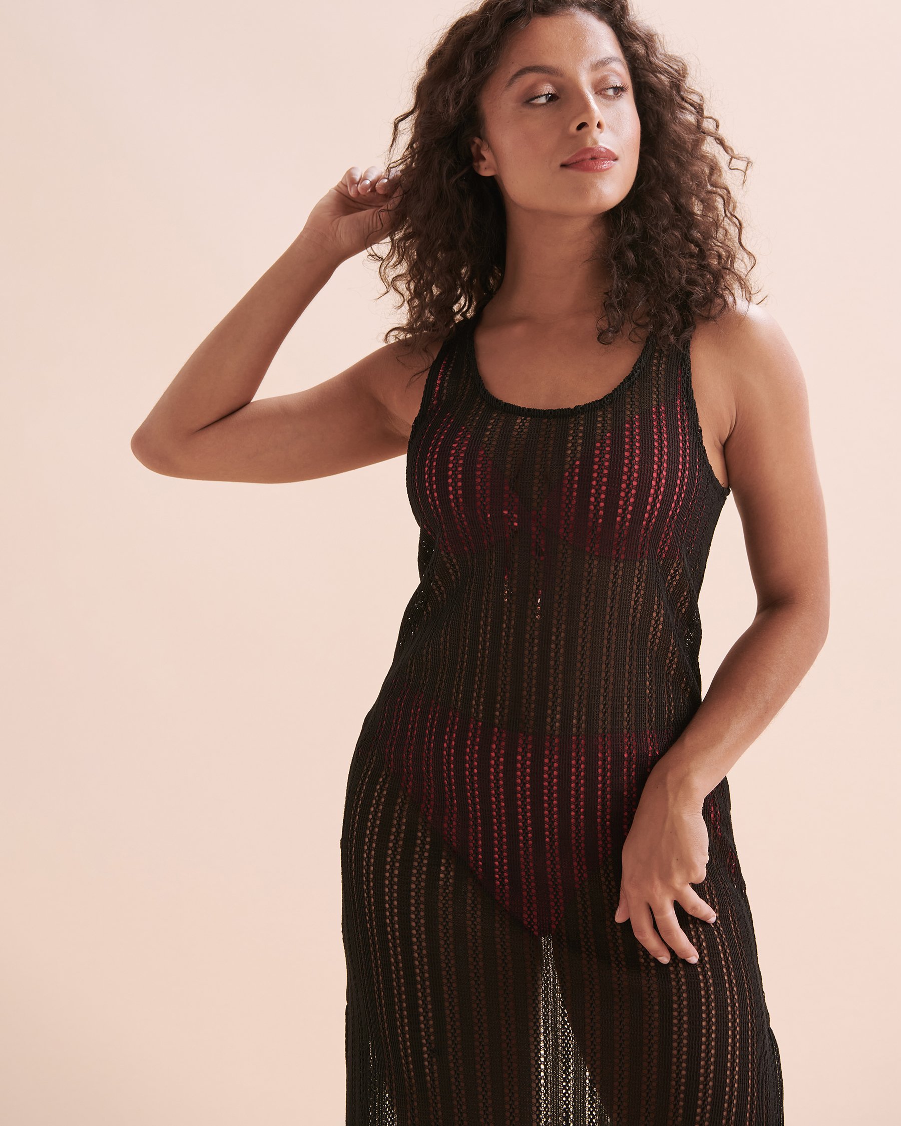 A simple, yet elegant crochet dress is a must-have for your next vacation, and Turquoise has made the perfect one. This black maxi dress is sleeveless with a high back tie. Its side slits add a flirty look to an iconic piece that is perfect for either wearing over a bathing suit, or dressing up for dinner.