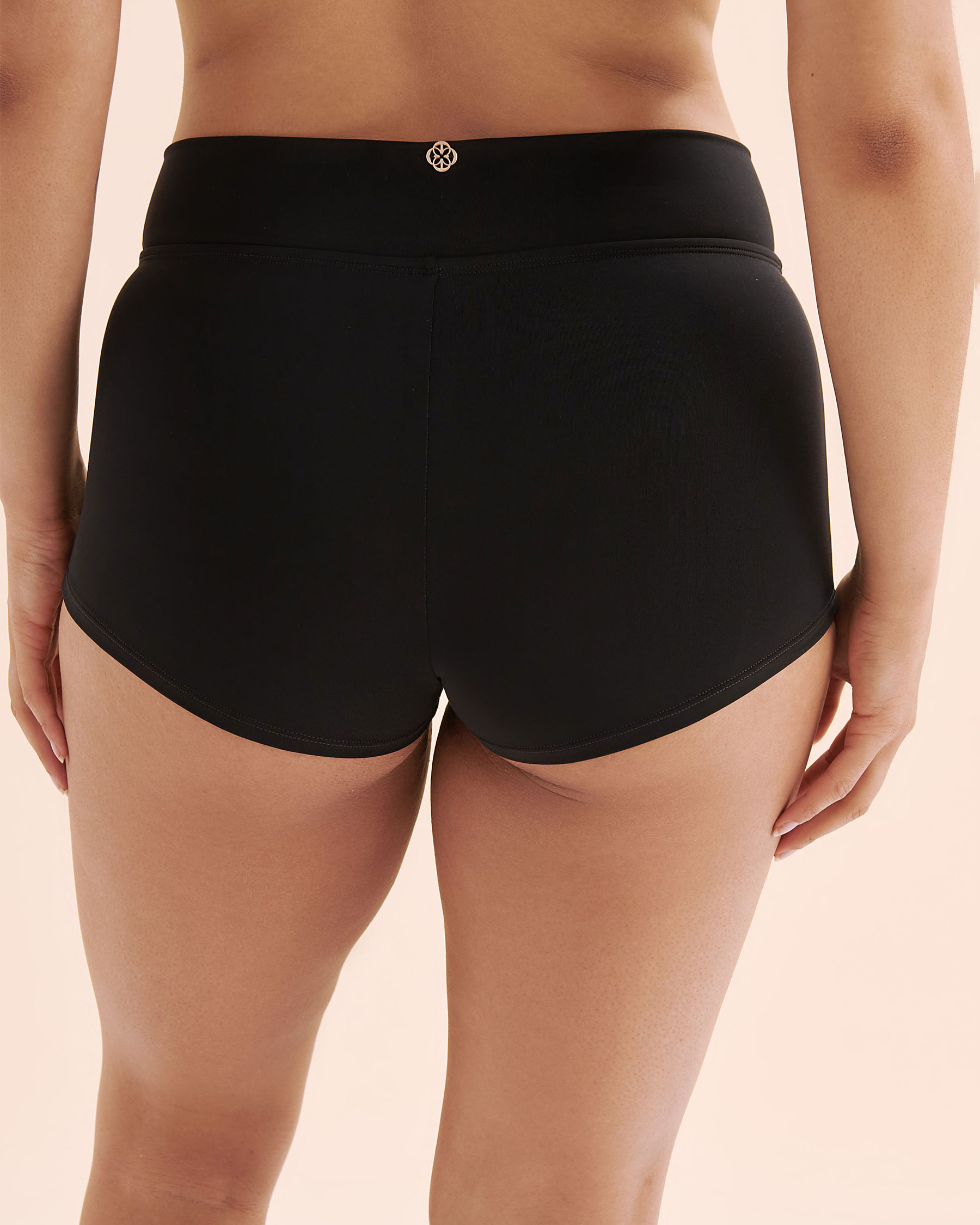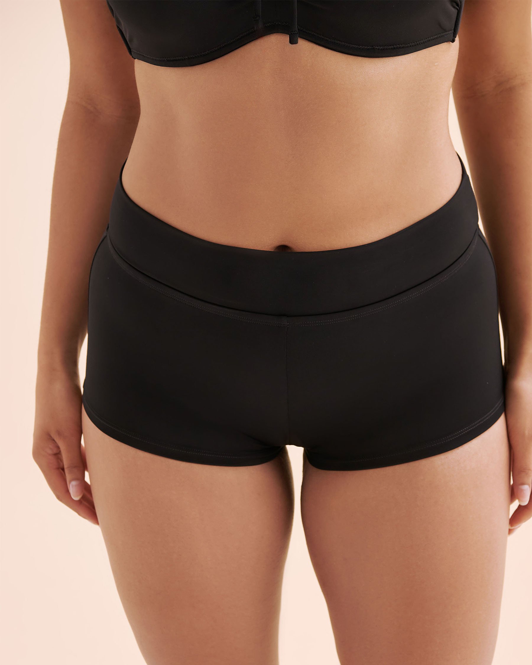 This mid-rise boy short bikini bottom is a versatile essential and made to be worn your way. The fold-over waistband adjusts to your preference, wear it folded for a modern look or unfolded for extra coverage, adapting beautifully to every silhouette. With its boyshort cut inspired by classic shorts, full back coverage and fully lined black fabric, it offers uncompromising comfort, whether you're sunbathing, swimming or even training.