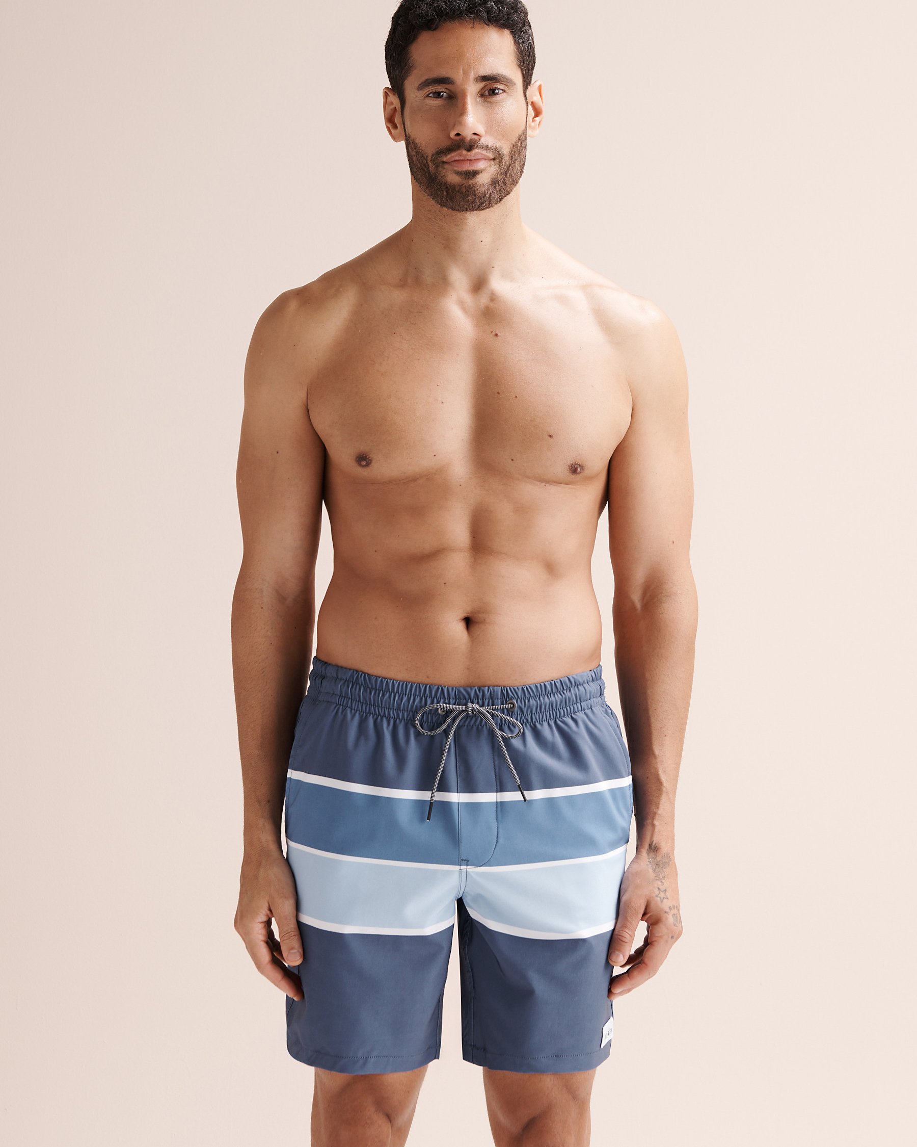 Show off your style with the Lucky Aloha volley shorts, designed for comfort and originality. The elastic waistband, adjustable drawstring, and mesh liner offer optimal support. The pockets, including one with a key loop, are ideal for keeping small items within reach. The white and blue striped pattern evokes ocean waves, giving these shorts a fresh and confident look.