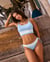 This bralette bikini top charms with its blue‑and‑white duo. Its ribbed fabric adds texture, perfect for anyone who loves a style that’s both trendy and effortlessly chic. The adjustable straps and easy pull‑on design make it simple, practical and comfortable. Inside, the built‑in elastic support provides a secure and comfy fit.