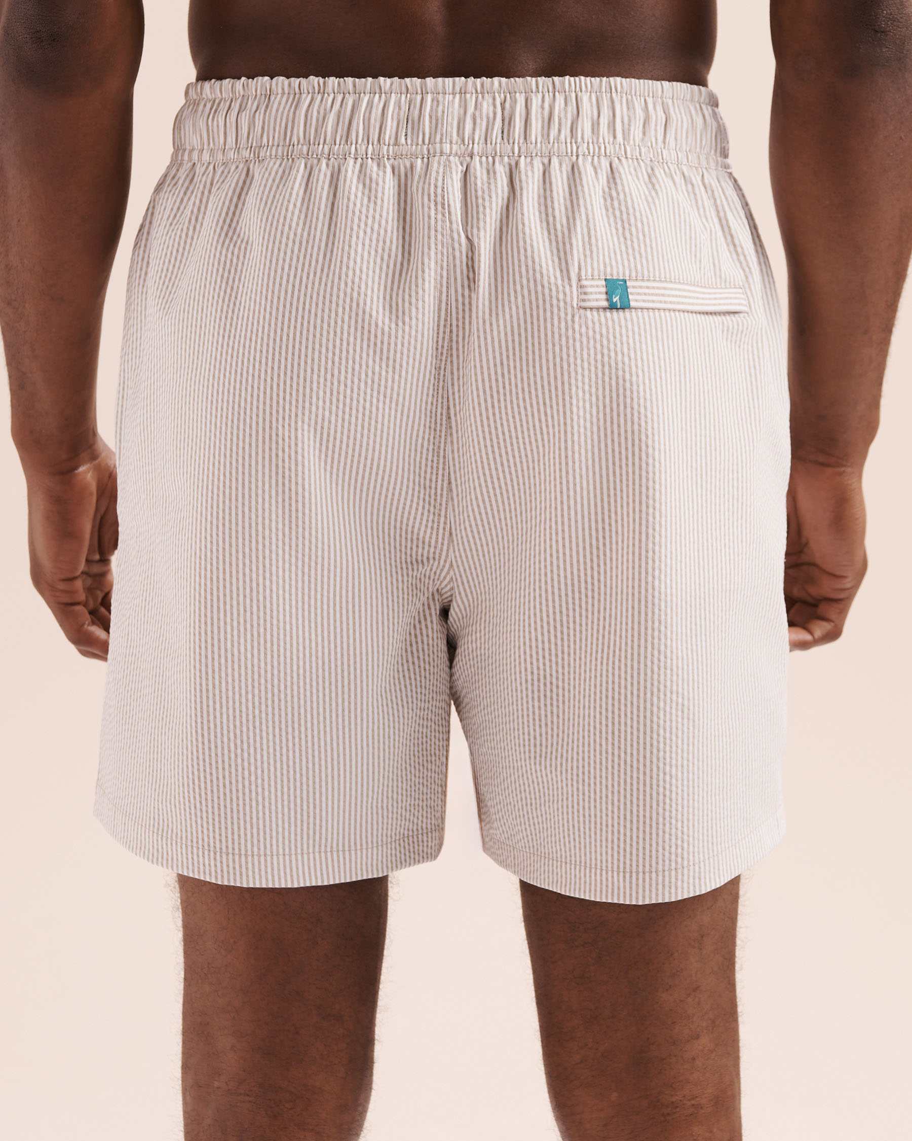 This volley of swim shorts is inspired by the maritime world, featuring classic stripes and a textured seersucker finish reminiscent of gentle ocean waves. Become the captain of your next boat outing. Whether sitting or standing, the long inner liner is designed to keep you comfortable all day long.