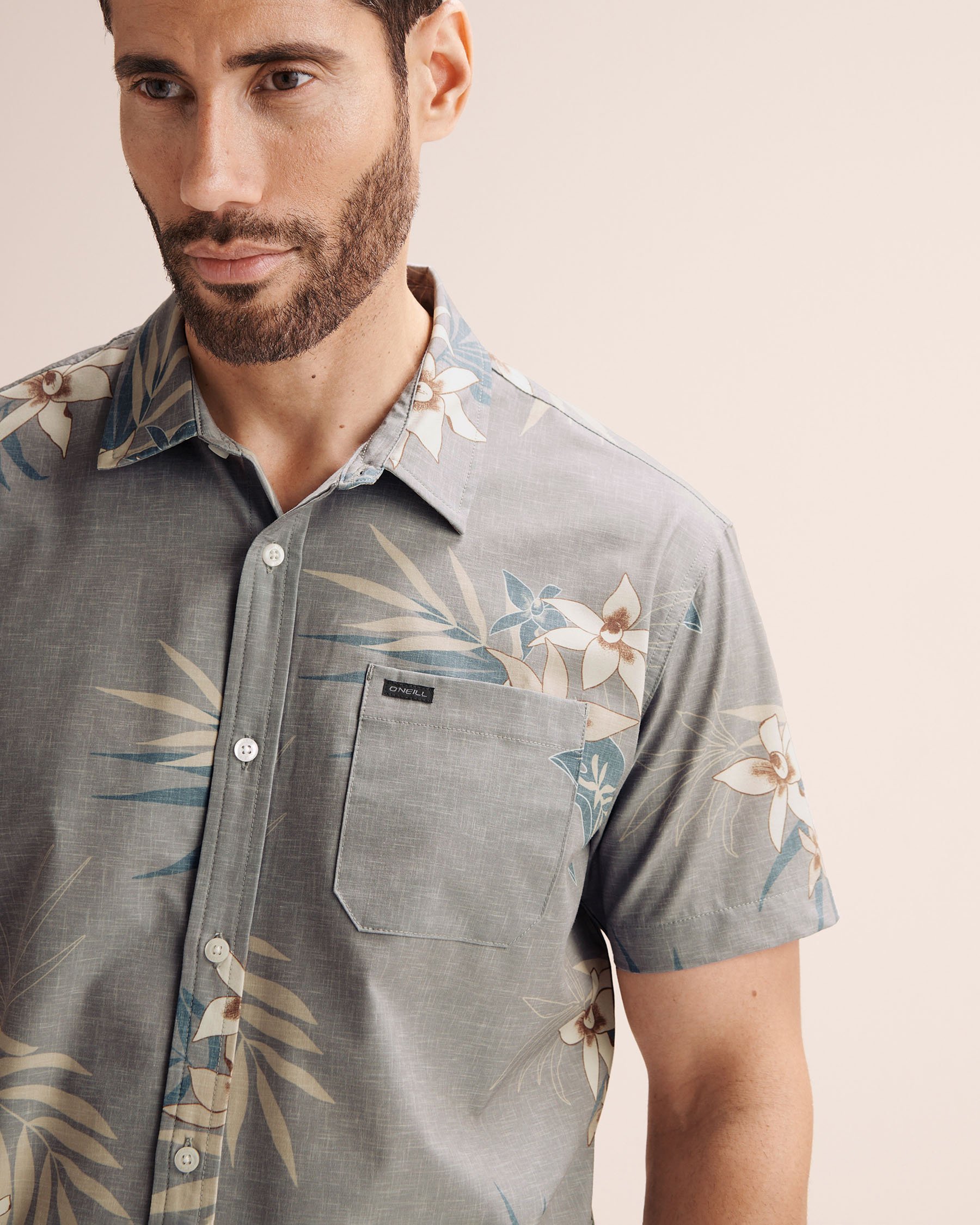 Discover the short-sleeve shirt designed for your outdoor adventures or urban outings. Made from a lightweight, wrinkle-resistant fabric, it’s the ideal choice to pack in your suitcase. This shirt features UPF 50+ sun protection to shield you from harmful rays, along with O’Neill Hyperdry technology that wicks away moisture to keep you dry. The white, blue and yellow Hawaiian pattern gives you the perfect vacation vibe, making it ideal for hiking, travelling or simply achieving an active and stylish everyday look.